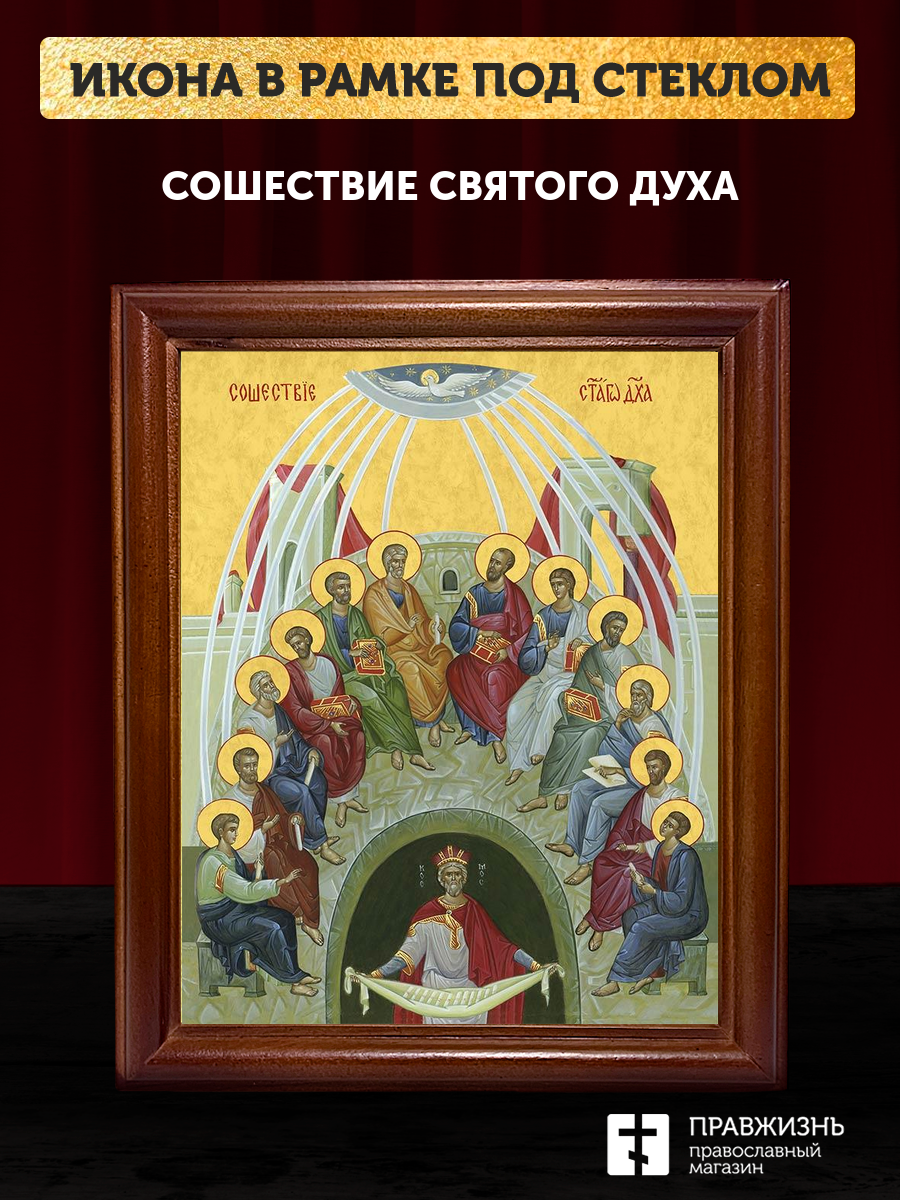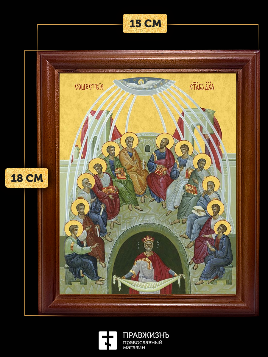 Икона Сошествие Святого Духа, деревянная рамка со стеклом 15х18х2 см 1244