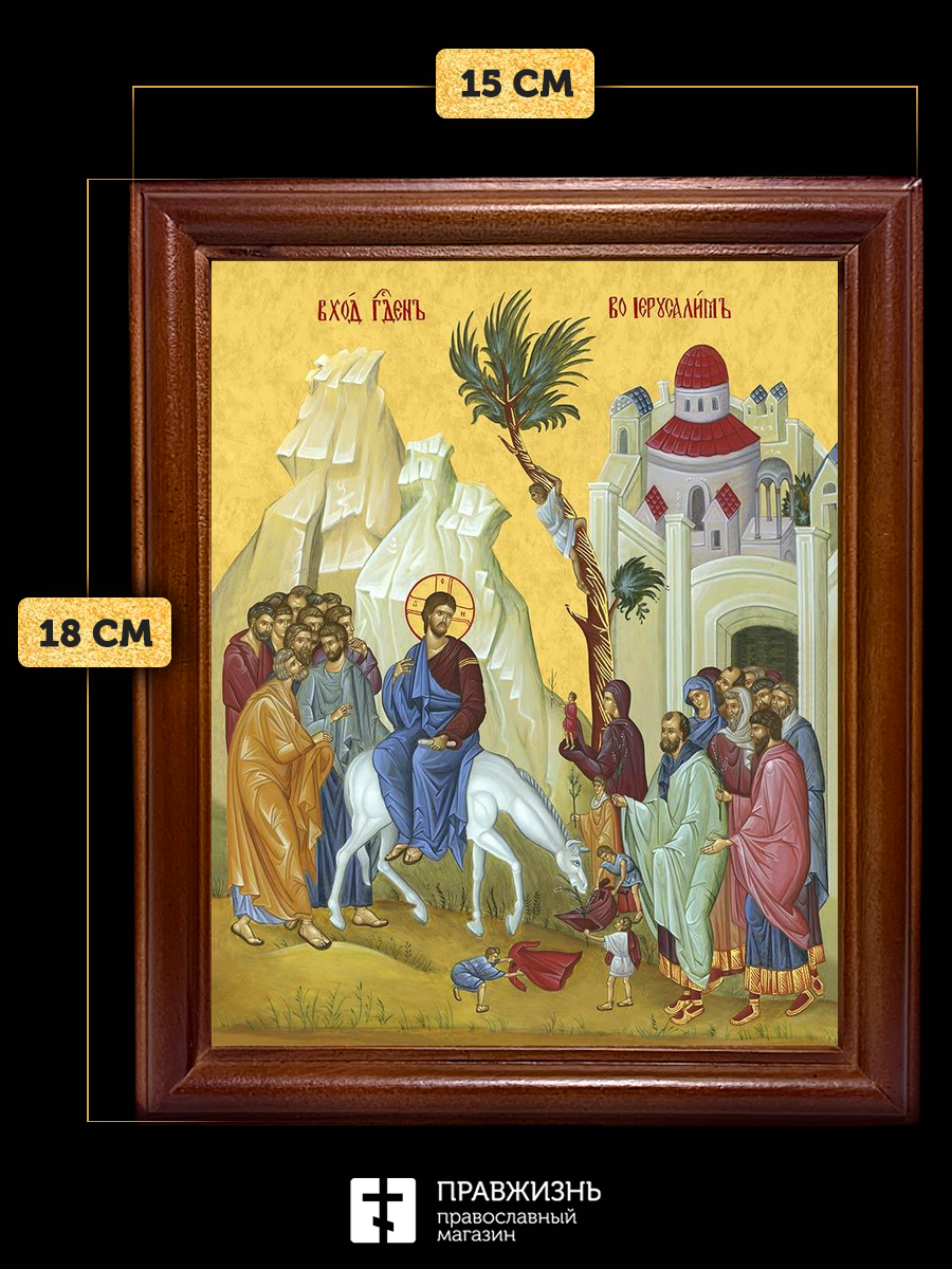 Икона Вход Господень в Иерусалим, деревянная рамка со стеклом 15х18х2 см 1208