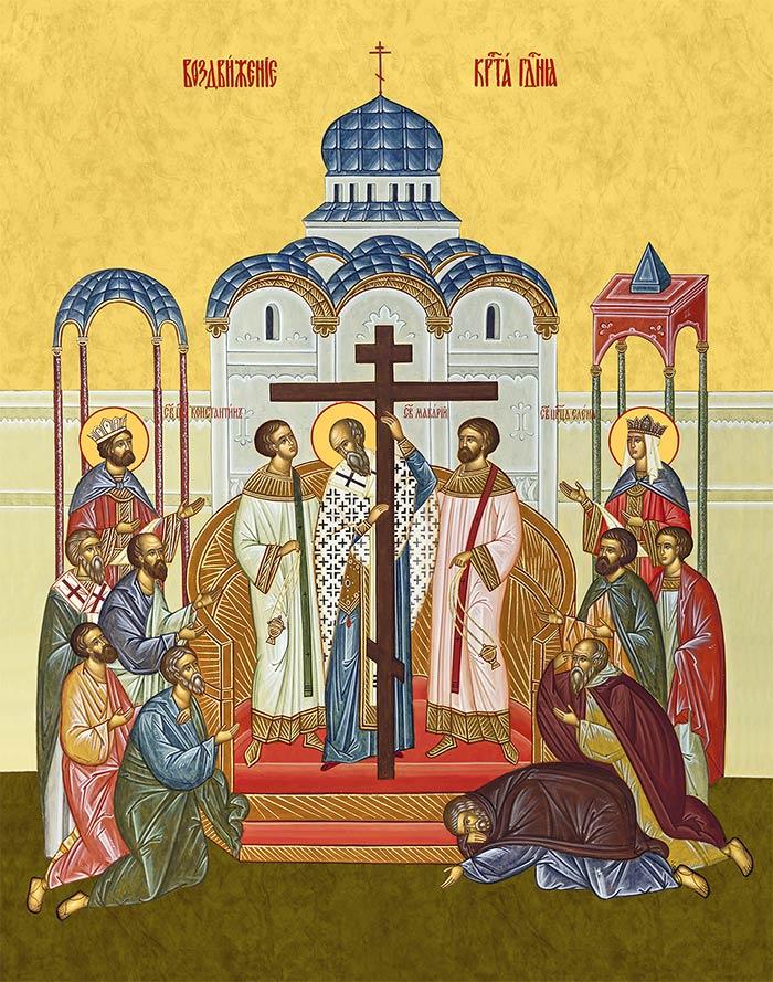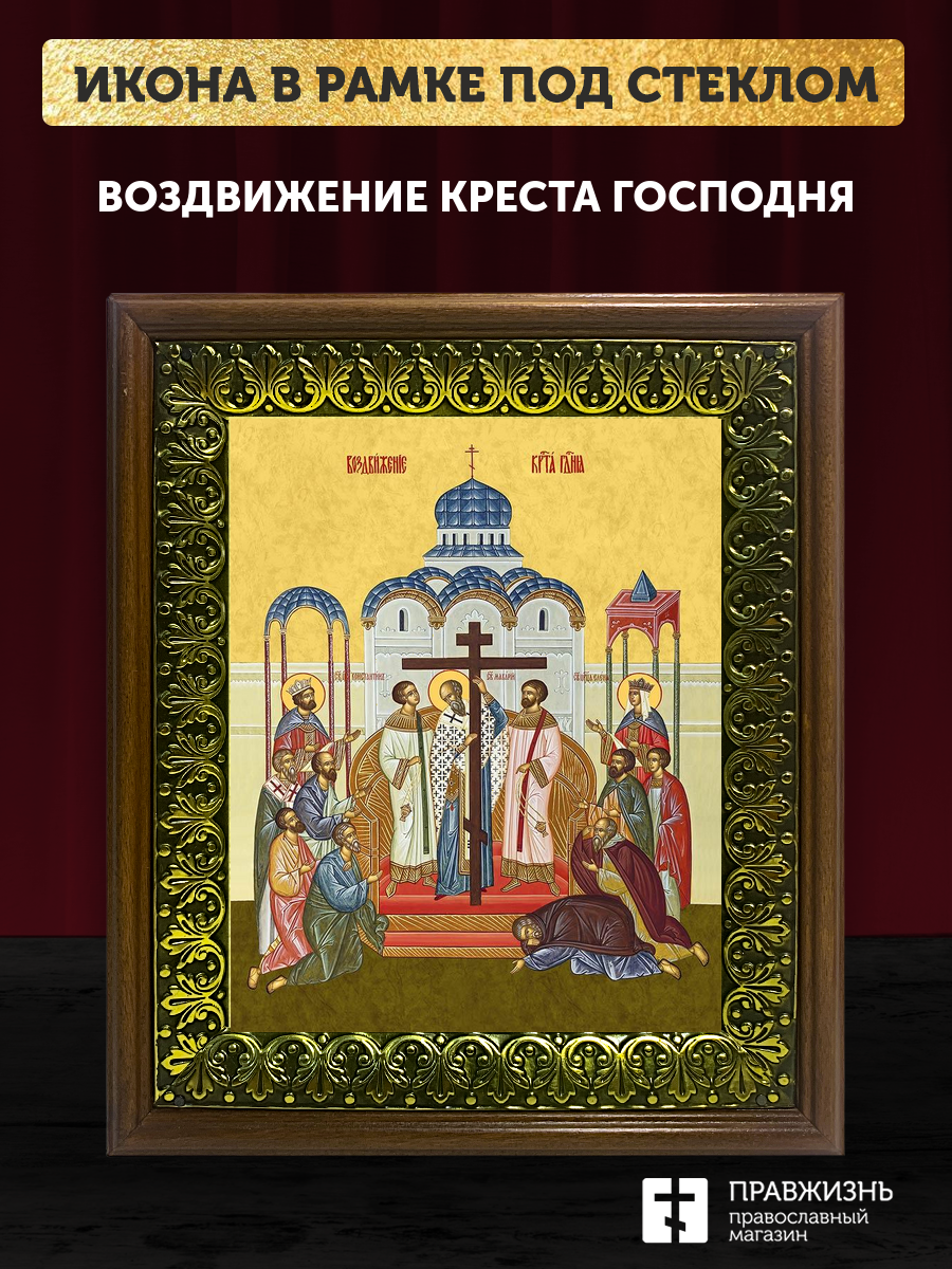 Икона Воздвижение Креста Господня, деревянная рамка с басмой и стеклом 18х21х2,5 см 1205