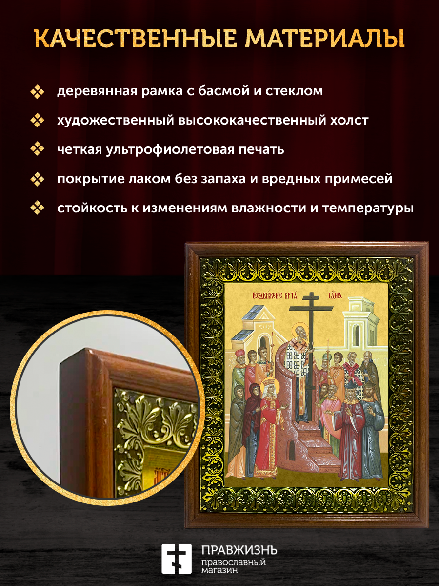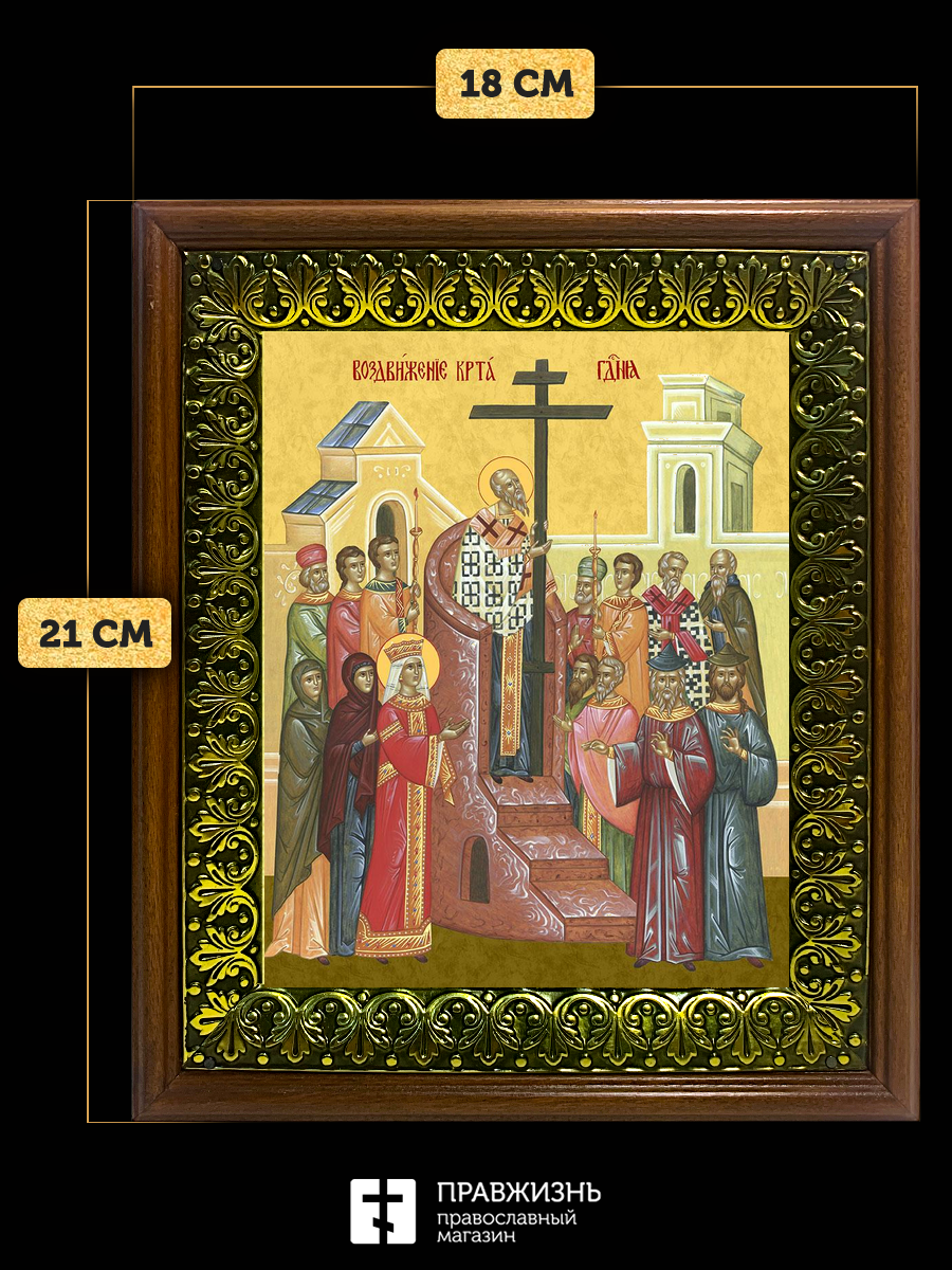 Икона Воздвижение Креста Господня, деревянная рамка с басмой и стеклом 18х21х2,5 см 1205