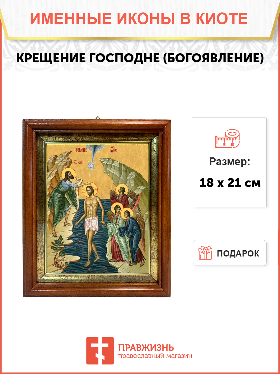 Икона 1 шт, киот-пенал со стеклом 1 шт, подарок 1 шт