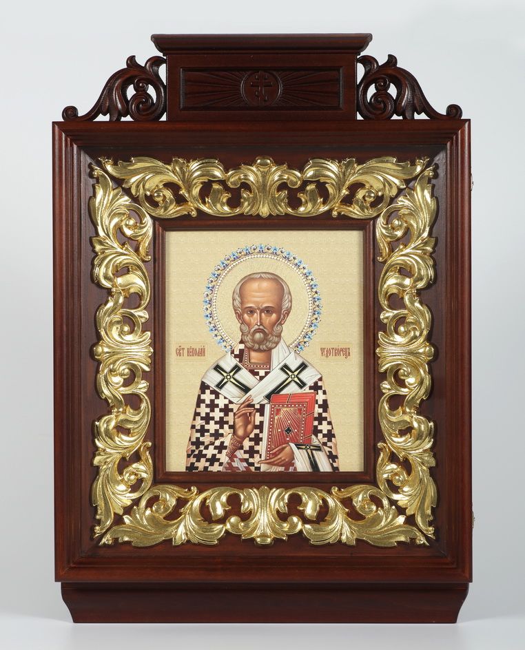 Икона фото в киоте 24х30 объемная печать, киот №9 Николай Чудотворец