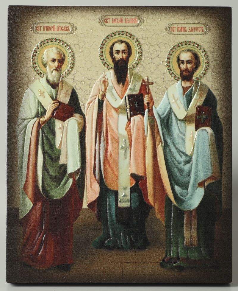 Икона на доске 13х15 объёмная печать, лак Три Святителя