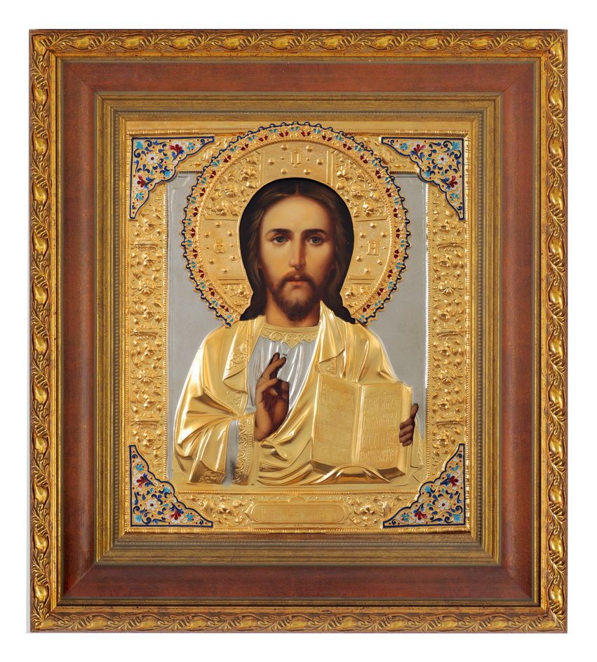Икона живописная в киоте 24х30 масло, риза №24, матовое золочение, эмаль, киот №22 Спаситель