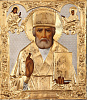 Икона живописная в ризе 24х30 масло, объемная риза №111, золочение Николай Чудотворец