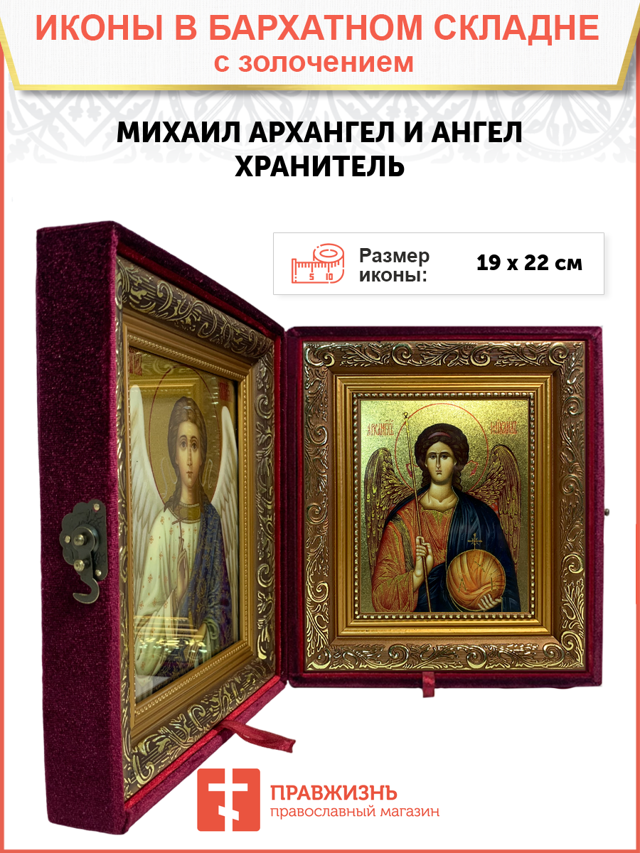 Икона складень Михаил Архангел и Ангел Хранитель с золочением 19х22х7 см