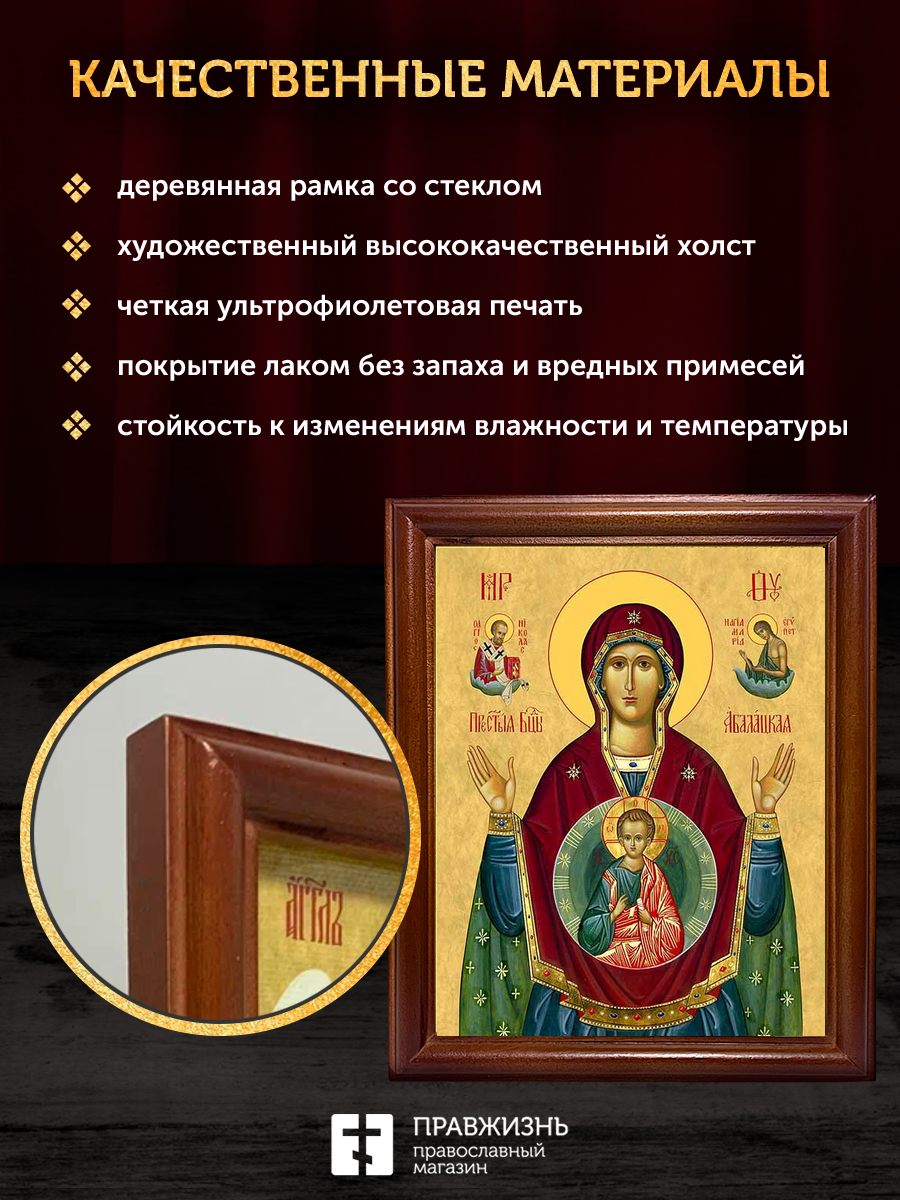 Икона Божьей Матери Абалацкая, деревянная рамка со стеклом 15х18х2 см 1180