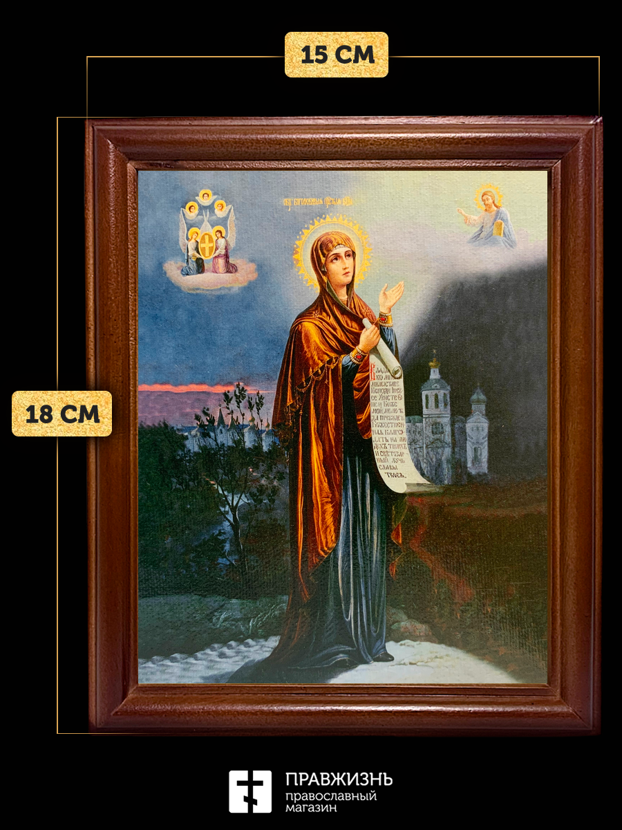 Икона Божьей Матери Боголюбская, деревянная рамка со стеклом 15х18х2 см 1182