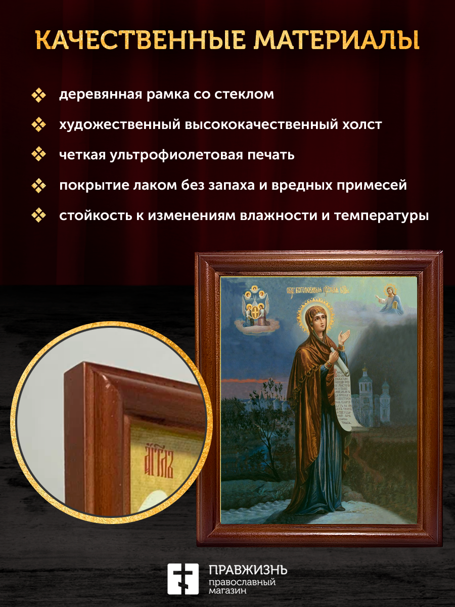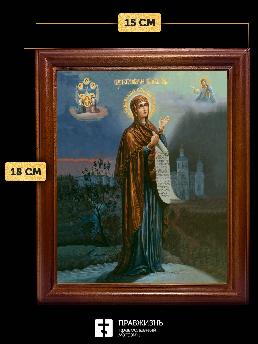 Икона Божьей Матери Боголюбская, деревянная рамка со стеклом 15х18х2 см 1182