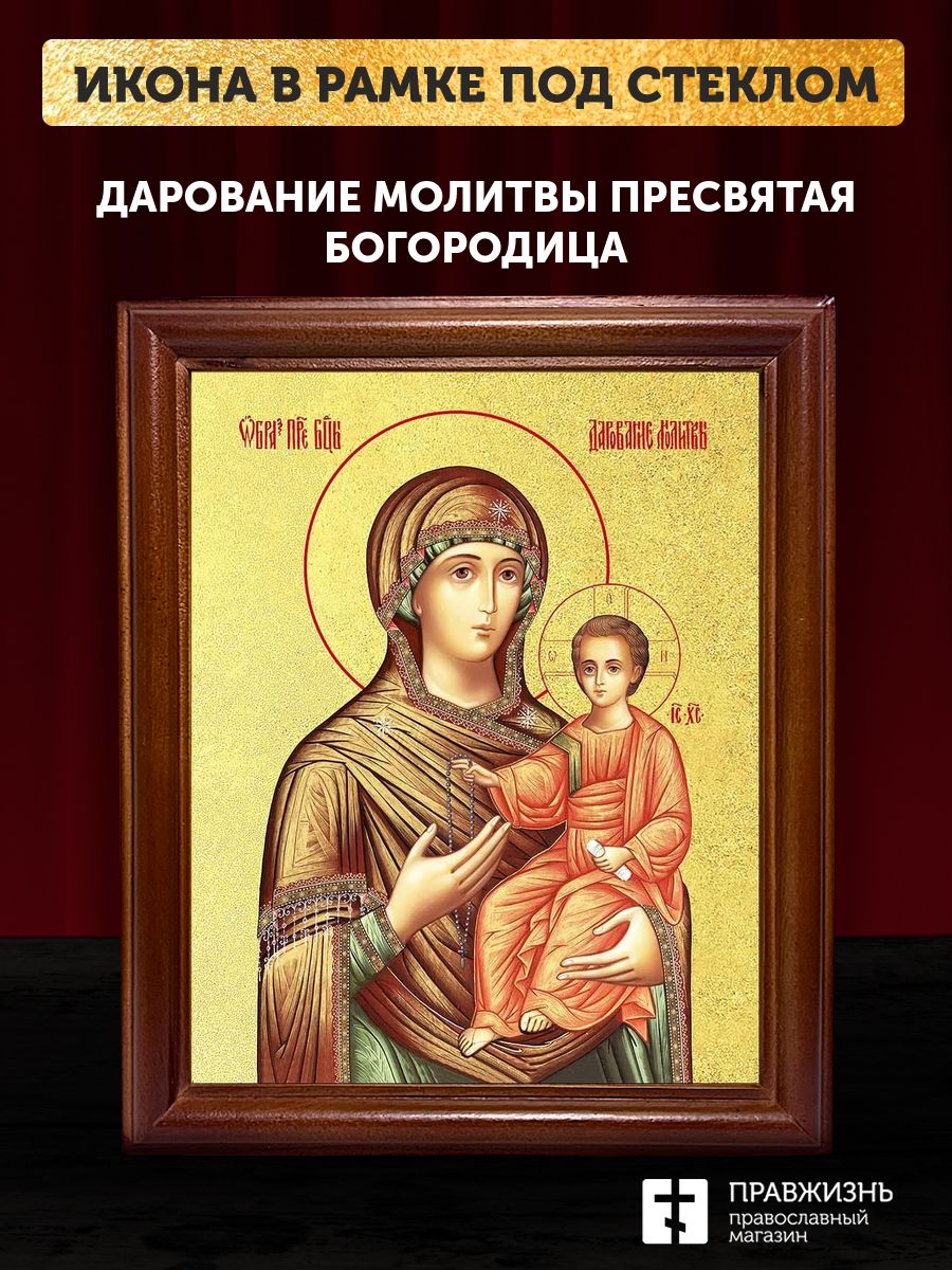 Икона Божией Матери Дарование молитвы с золочением, деревянная рамка со стеклом 15х18х2 см 1211