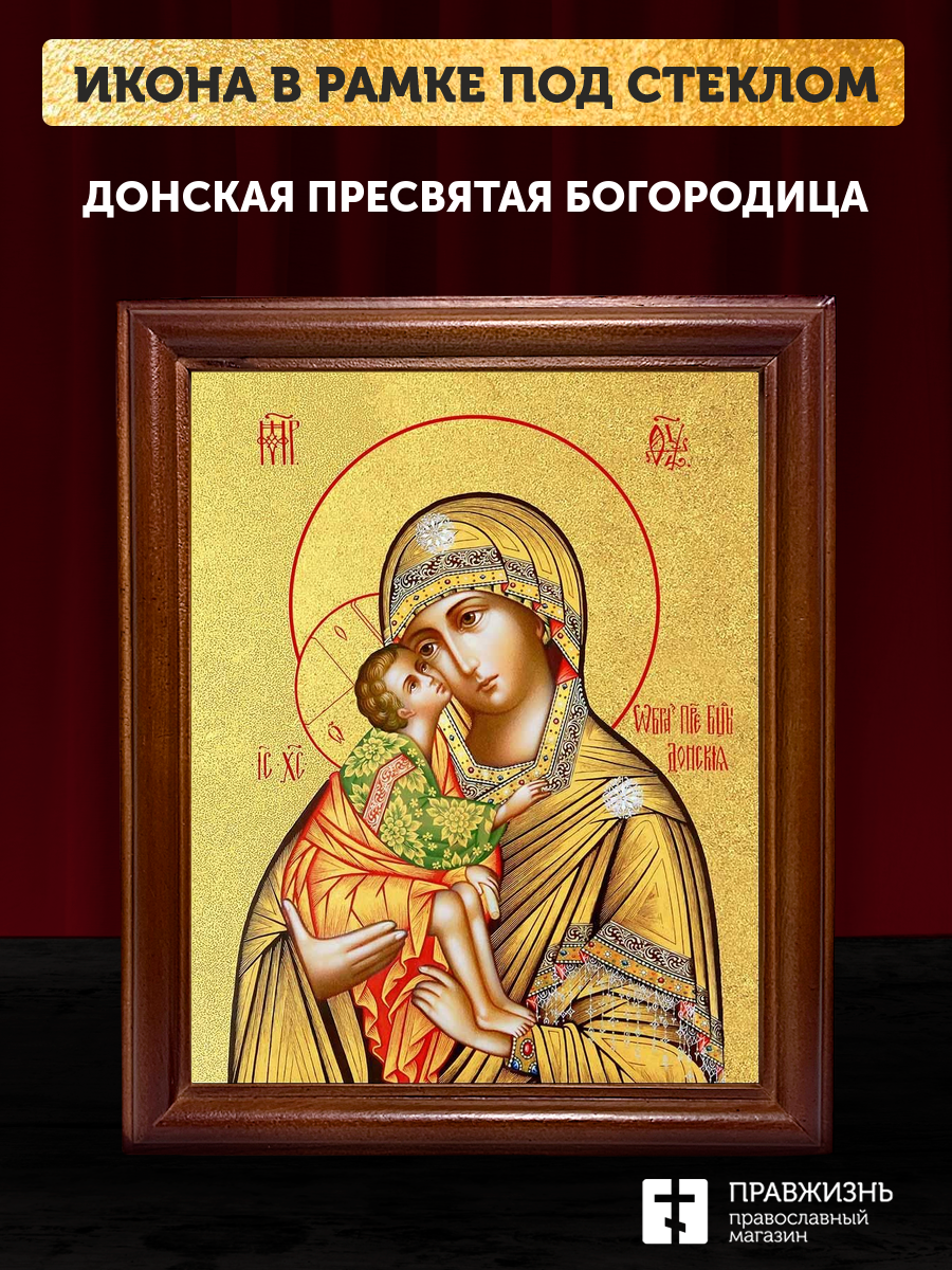 Икона Божией Матери Донская с золочением, деревянная рамка со стеклом 15х18х2 см 1137
