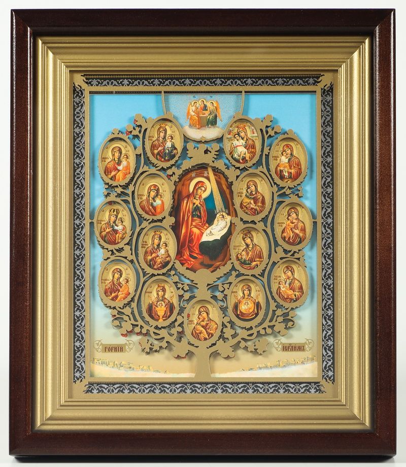 Икона в киоте 18х24 сложный, двойное тиснение, накладка аэрозольная Древо Богородицы 3