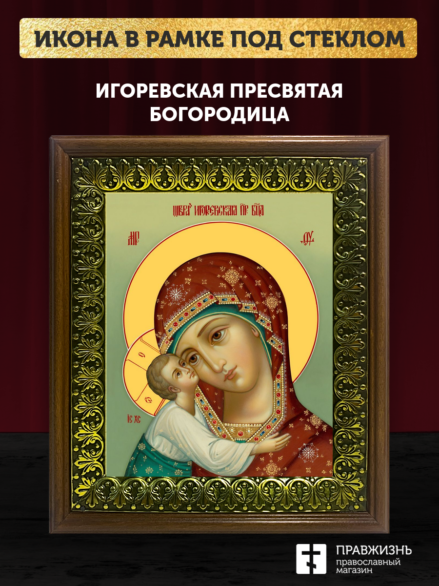 Икона Божией Матери Игоревская, деревянная рамка с басмой и стеклом 18х21х2,5 см 1195