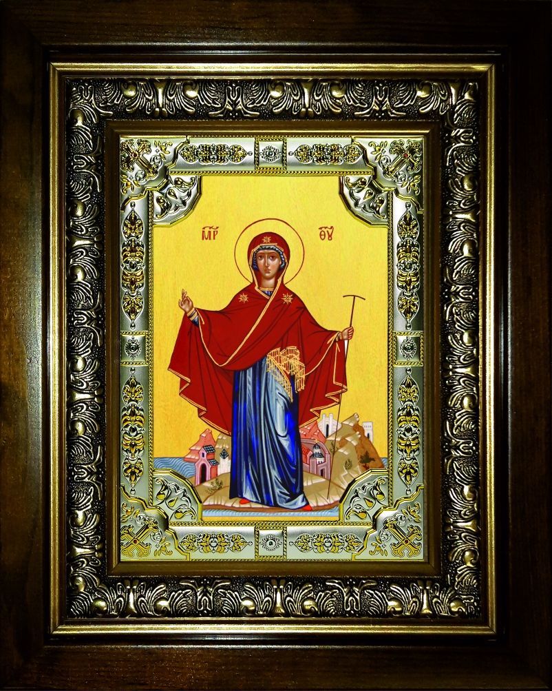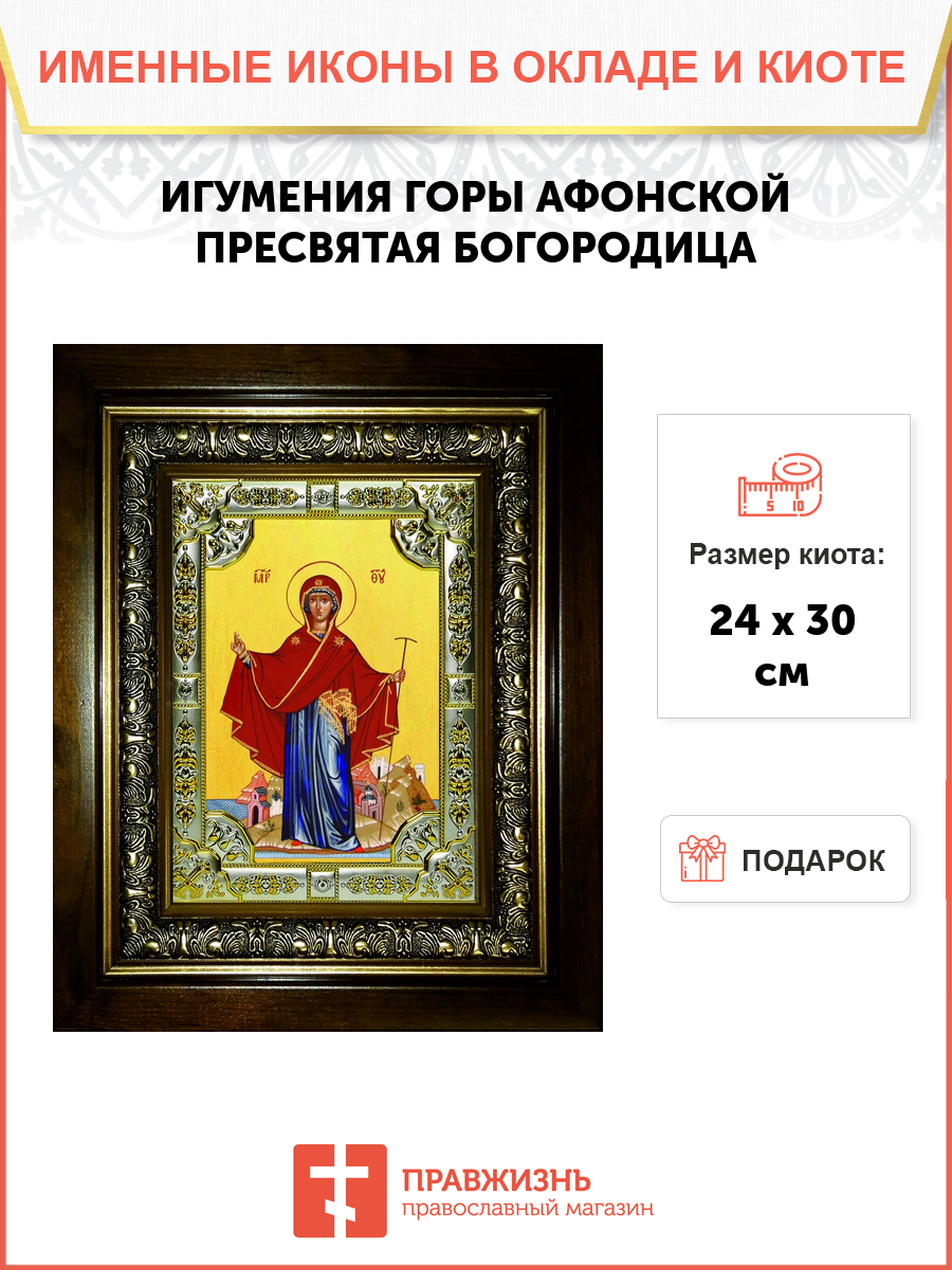 Икона освященная "Игумения святой Горы Афонской, икона Божией Матери", со стразами, в киоте 24x30 см