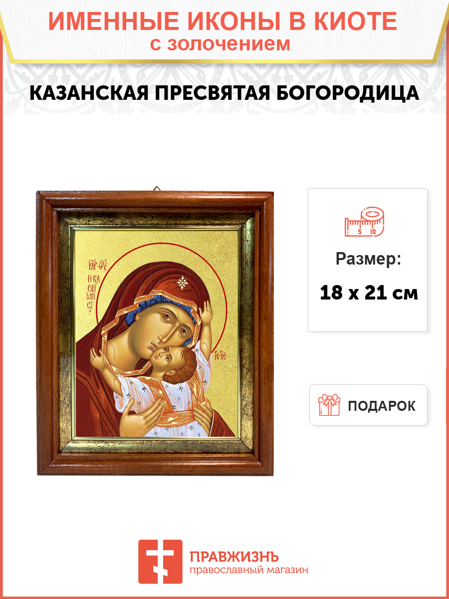 Икона 1 шт, киот-пенал со стеклом 1 шт, подарок 1 шт