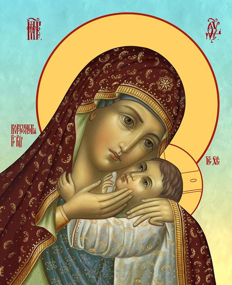 Икона Божией Матери Корсунская, деревянная рамка с басмой и стеклом 18х21х2,5 см 1119