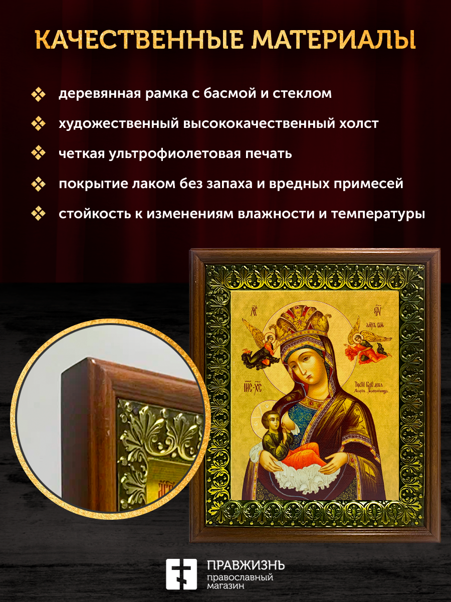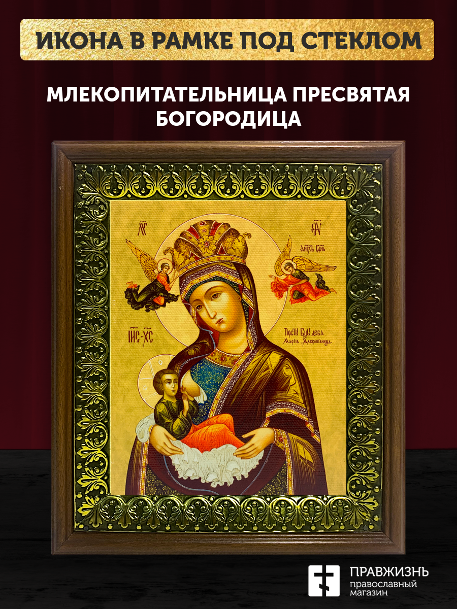 Икона Божией Матери Млекопитательница, деревянная рамка с басмой и стеклом 18х21х2,5 см 106