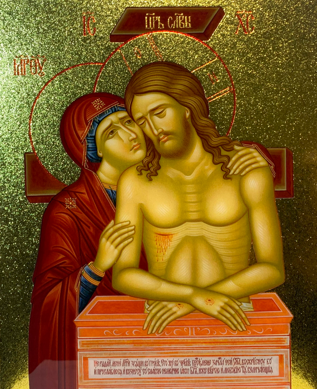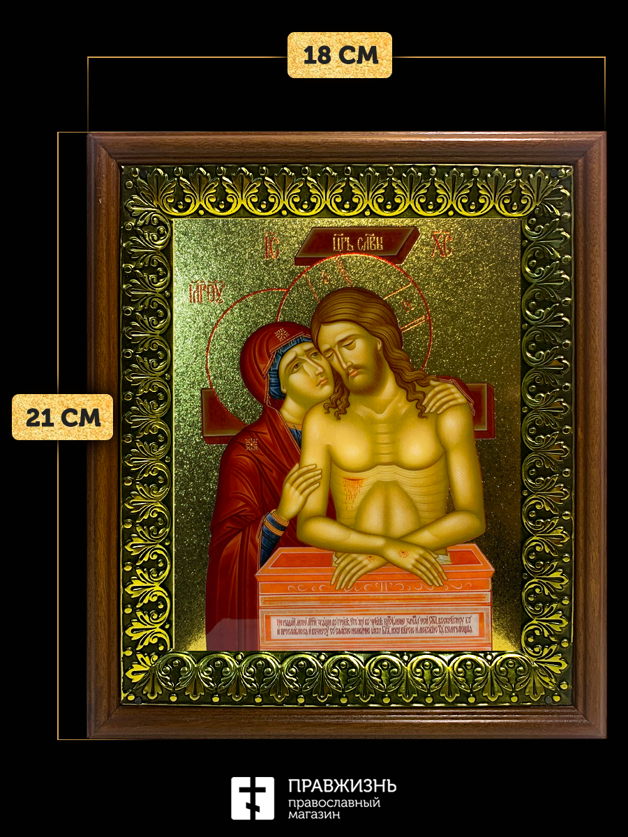 Икона Не рыдай Мене Мати с золочением, деревянная рамка с басмой и стеклом 18х21х2,5 см 1223