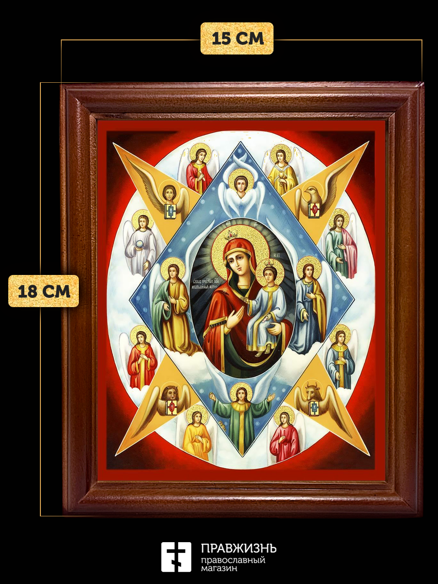 Икона Божией Матери Неопалимая Купина с золочением, деревянная рамка со стеклом 15х18х2 см 181