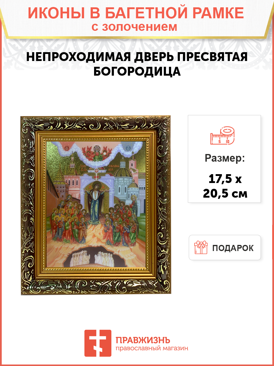 Икона Божией Матери Непроходимая Дверь с золочением, узкая рамка 17,5х20,5х2 см