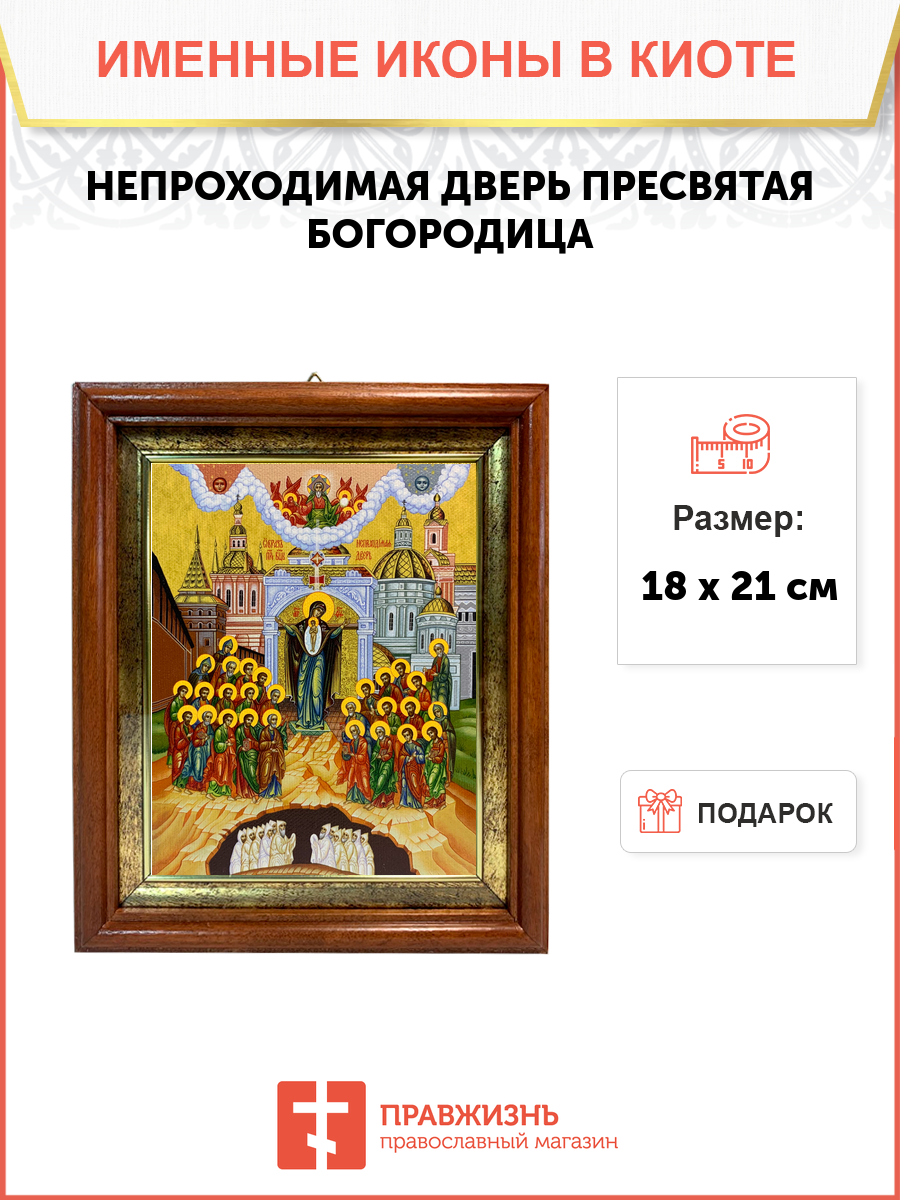 Икона 1 шт, киот-пенал со стеклом 1 шт, подарок 1 шт