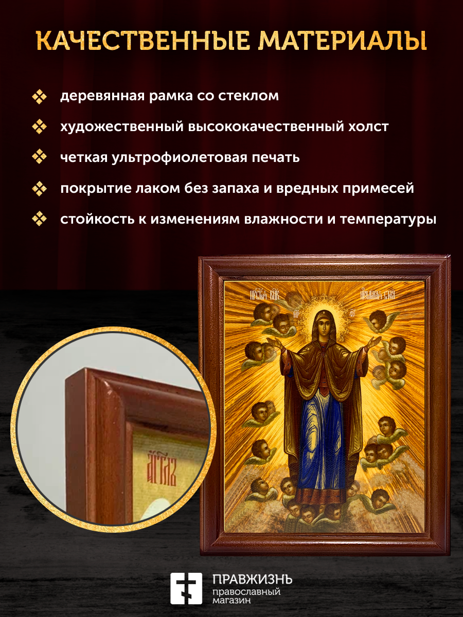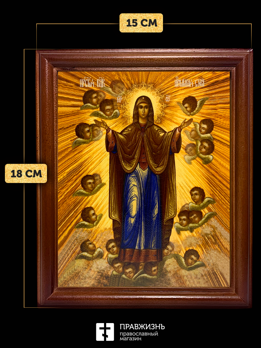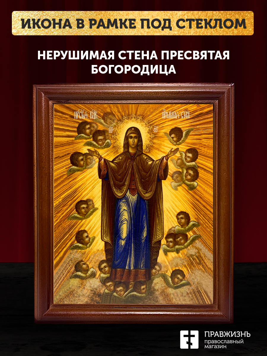 Икона Божией Матери Нерушимая Стена, деревянная рамка со стеклом 15х18х2 см 191