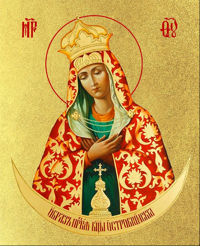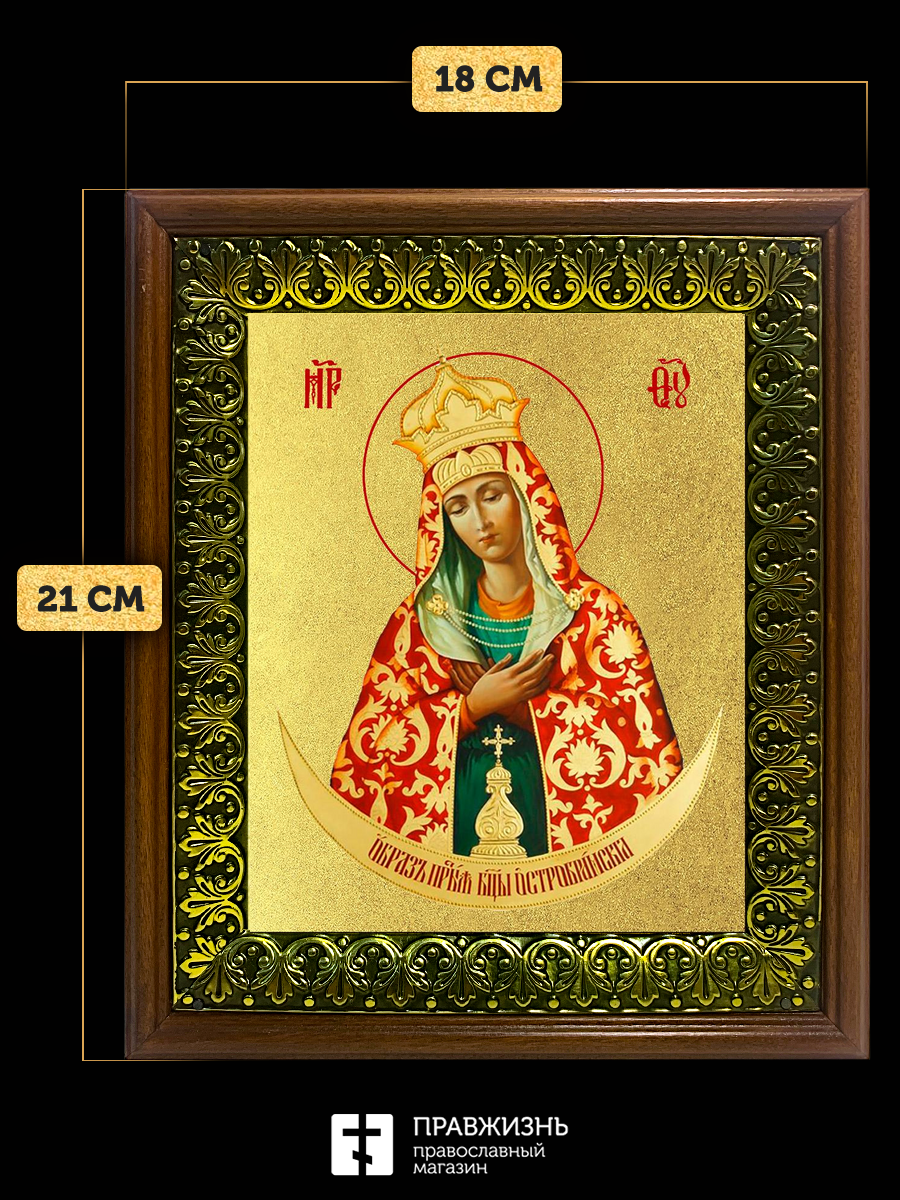 Икона Божией Матери Остробрамская с золочением, деревянная рамка с басмой и стеклом 18х21х2,5 см 114