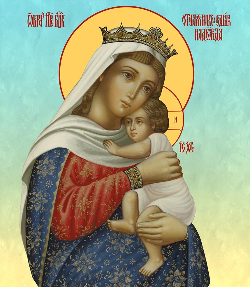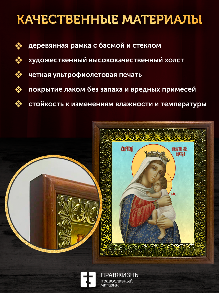 Икона Божией Матери Отчаянных единая надежда, деревянная рамка с басмой и стеклом 18х21х2,5 см 1227