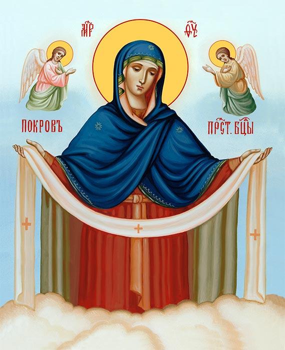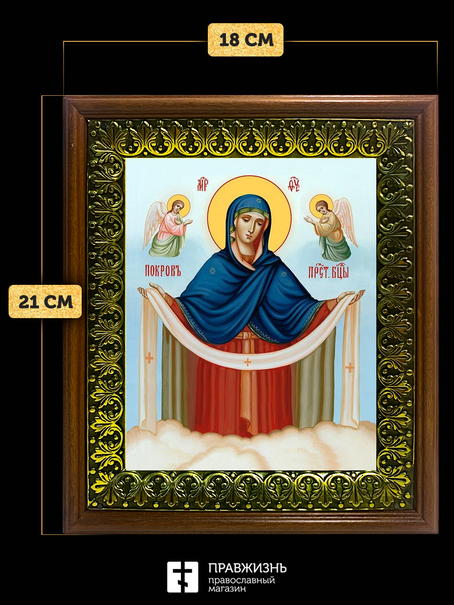 Икона Покров Пресвятой Богородицы, деревянная рамка с басмой и стеклом 18х21х2,5 см 119