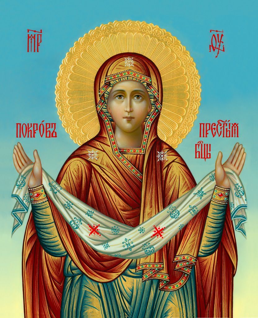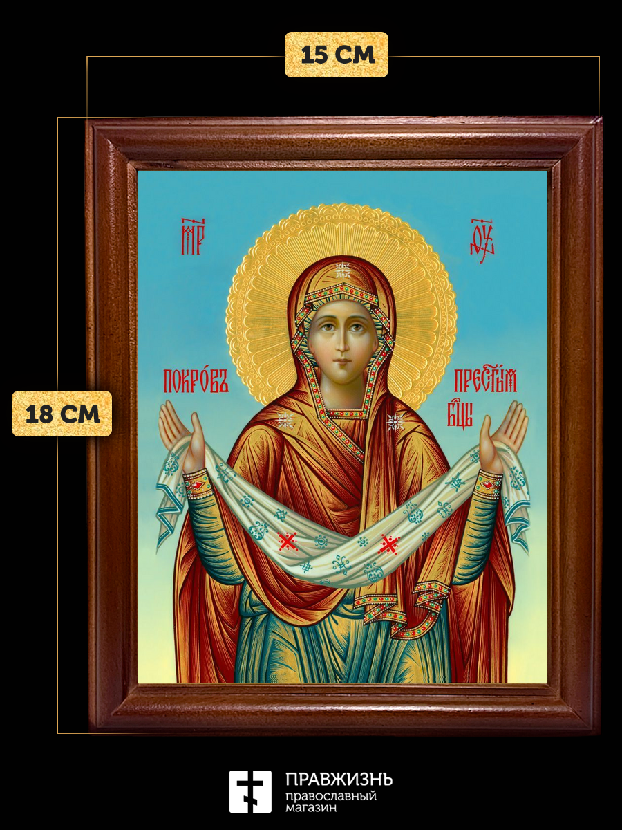 Икона Покров Пресвятой Богородицы, деревянная рамка со стеклом 15х18х2 см 119