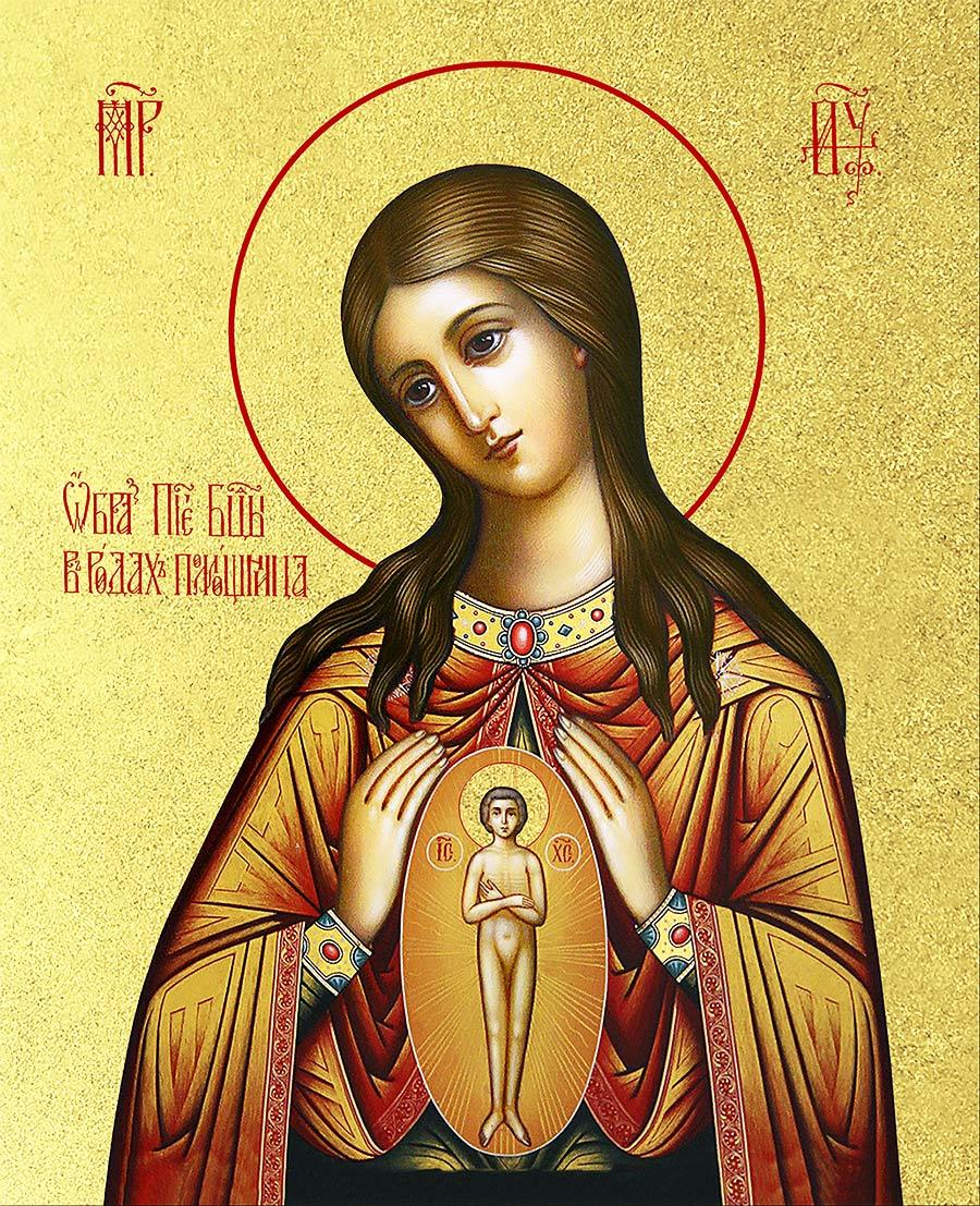 Икона Божией Матери Помощница в родах с золочением, деревянная рамка со стеклом 15х18х2 см 120