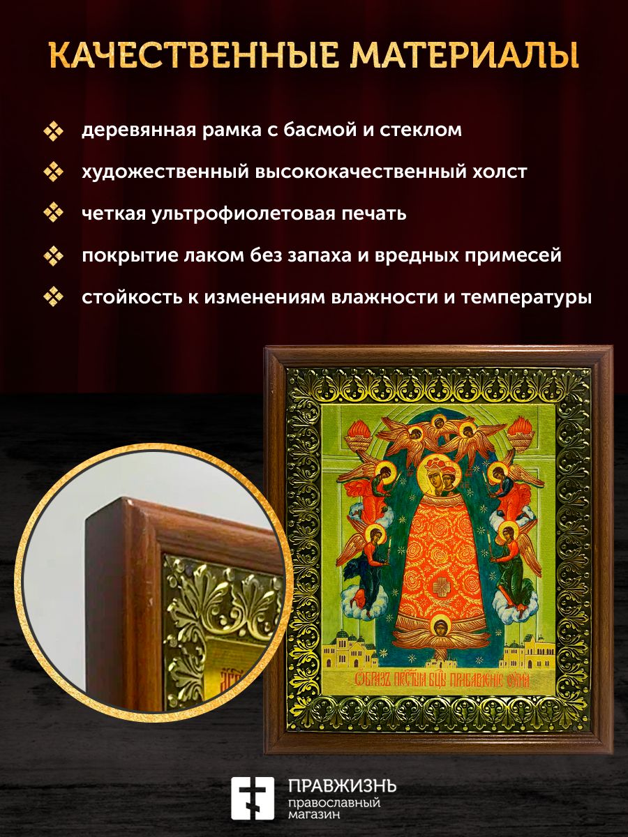 Икона Божией Матери Прибавление ума, деревянная рамка с басмой и стеклом 18х21х2,5 см 122