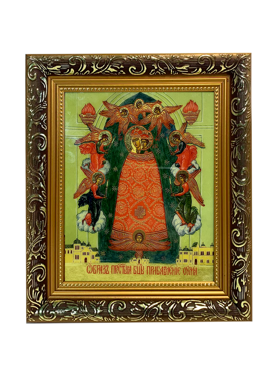 Икона Божией Матери Прибавление ума с золочением, узкая рамка 17,5х20,5х2 см