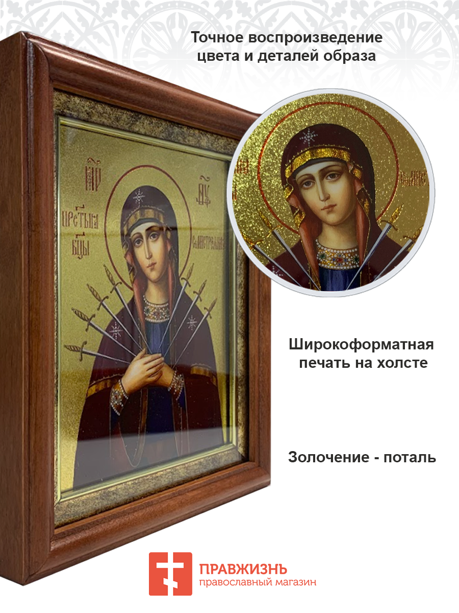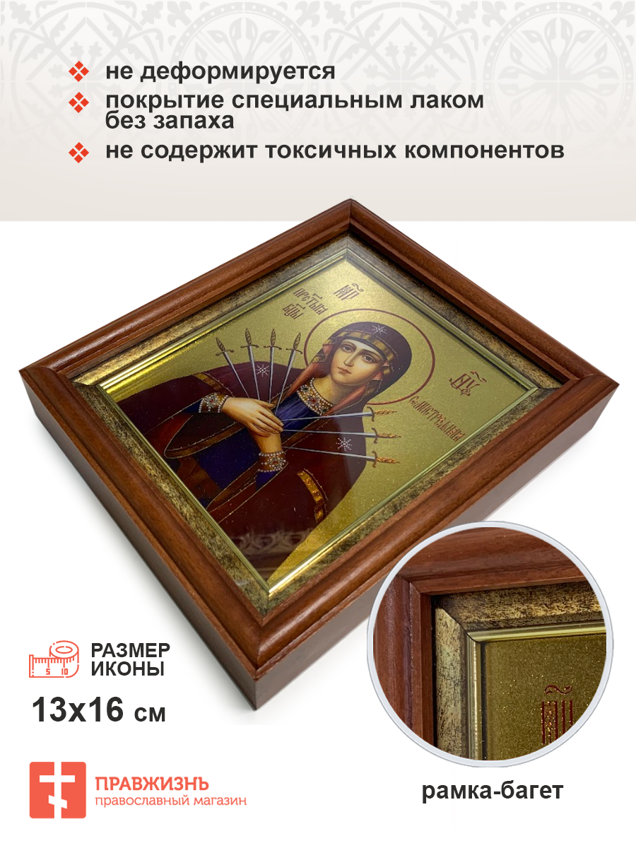 Икона 127 Семистрельная Божия Матерь золочение поталью киот 21 см 03065_УЛ_KRA