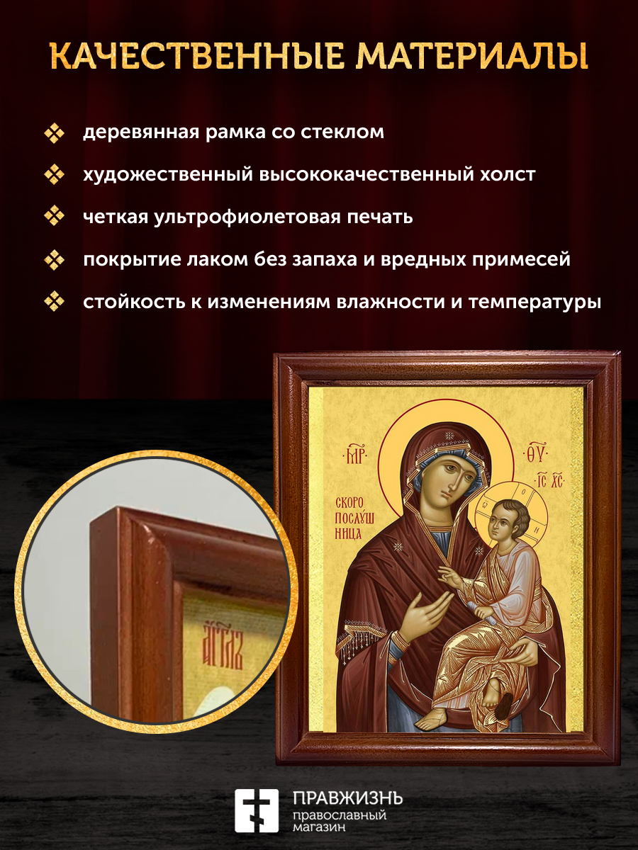 Икона Божией Матери Скоропослушница, деревянная рамка со стеклом 15х18х2 см 132