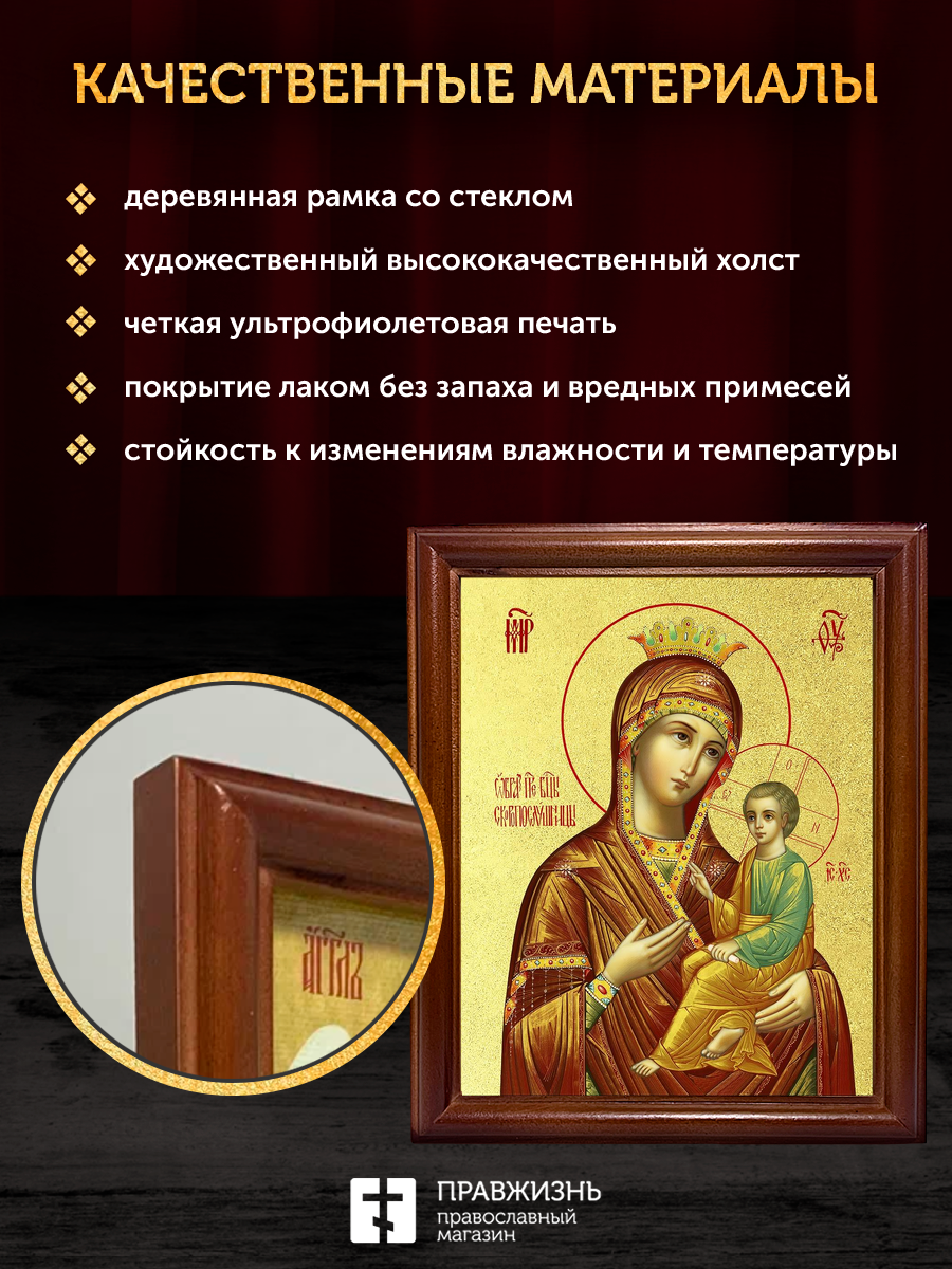 Икона Божией Матери Скоропослушница с золочением, деревянная рамка со стеклом 15х18х2 см 132