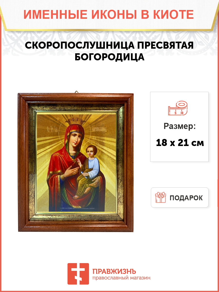 Икона 1 шт, киот-пенал со стеклом 1 шт, подарок 1 шт