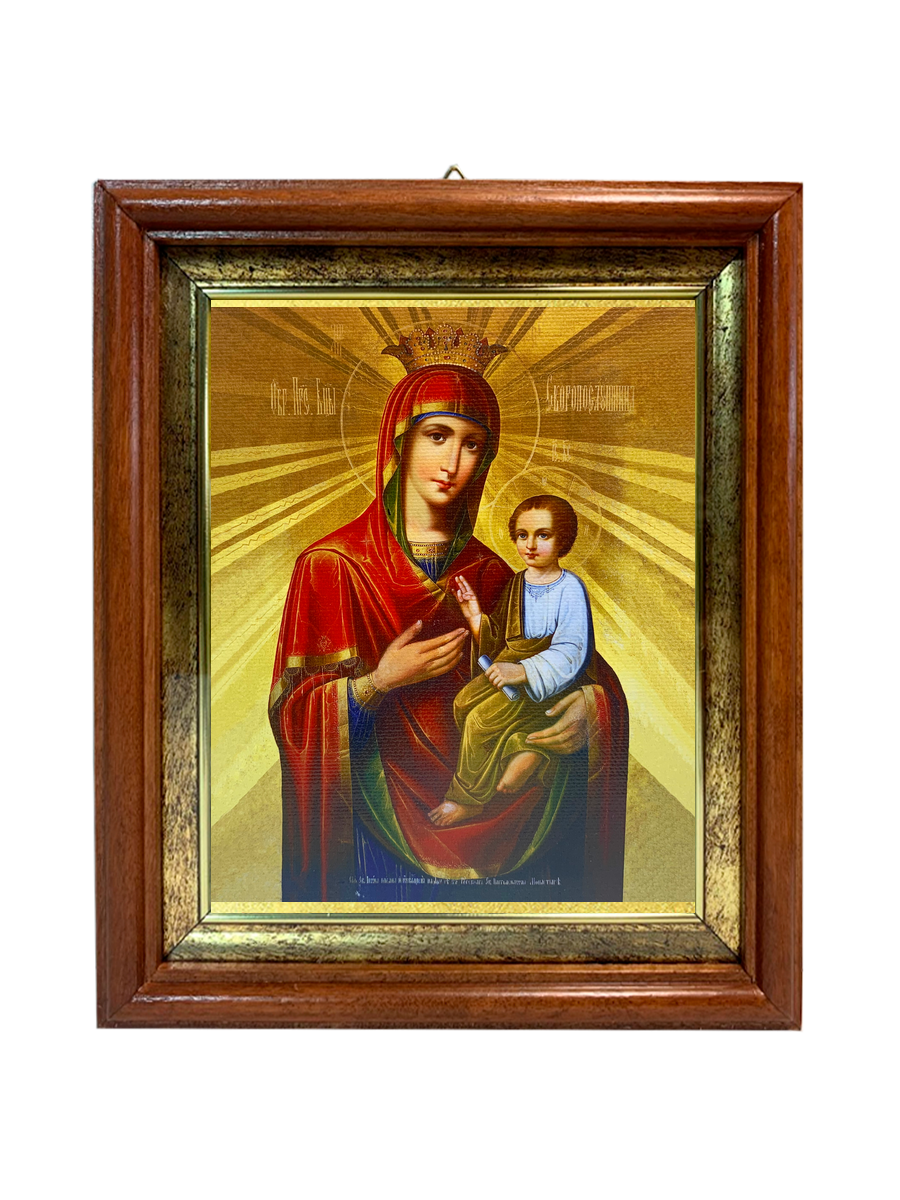 Икона Скоропослушница Божия Матерь на холсте в киоте 132