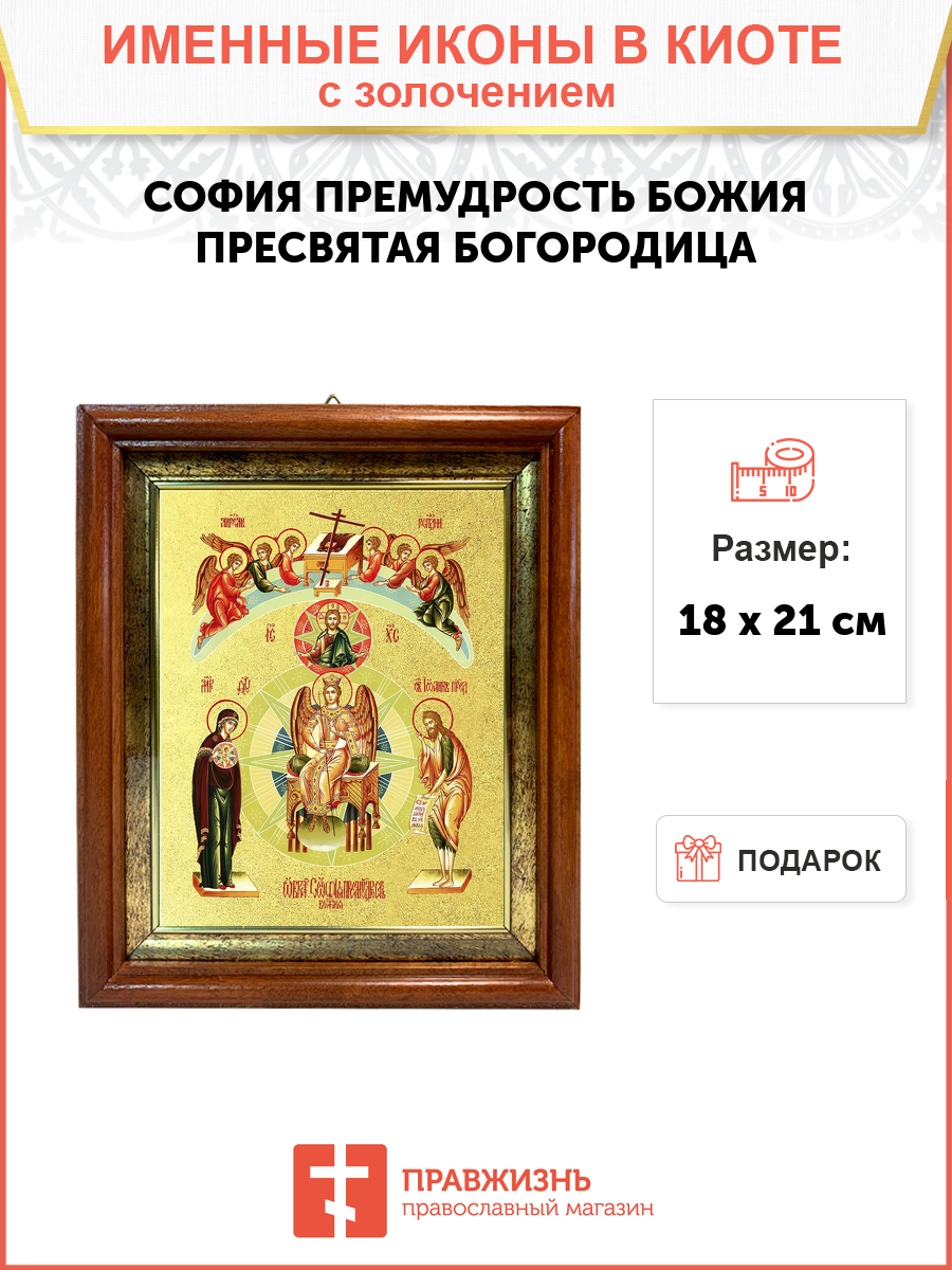 Икона 1 шт, киот-пенал со стеклом 1 шт, подарок 1 шт