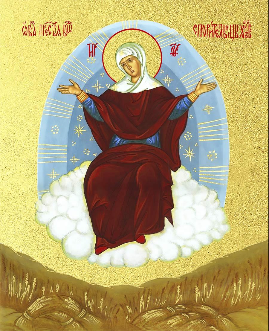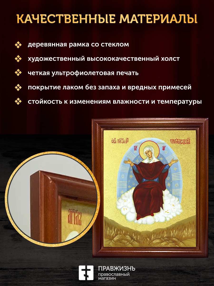 Икона Божией Матери Спорительница хлебов с золочением, деревянная рамка со стеклом 15х18х2 см 151