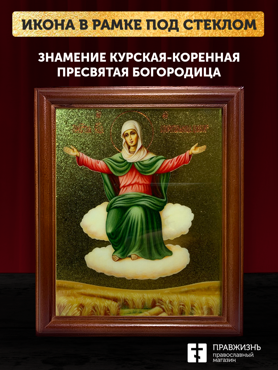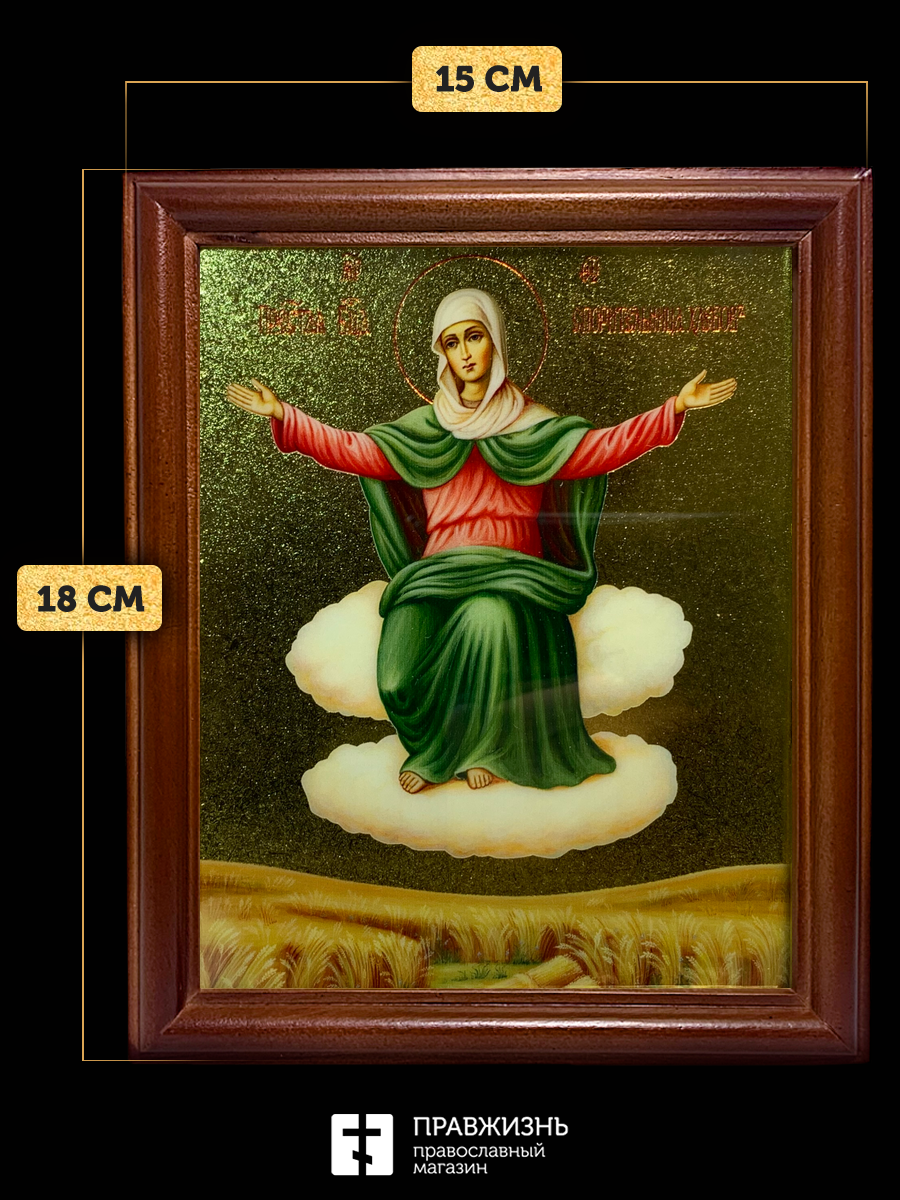Икона Божией Матери Спорительница хлебов с золочением, деревянная рамка со стеклом 15х18х2 см 151