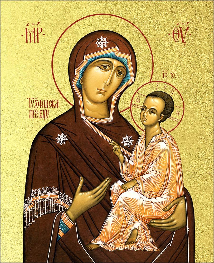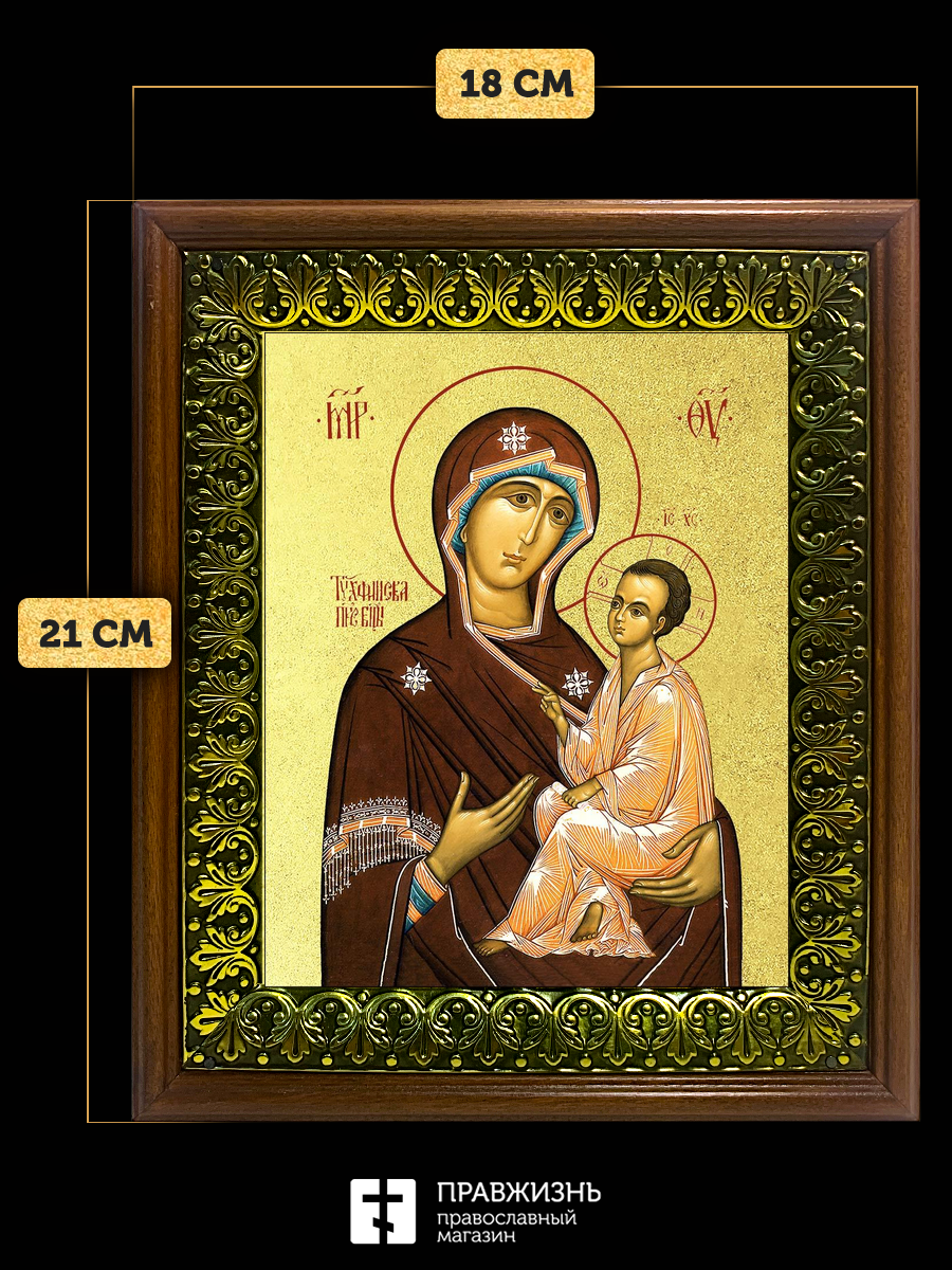 Икона Божией Матери Тихвинская с золочением, деревянная рамка с басмой и стеклом 18х21х2,5 см 150