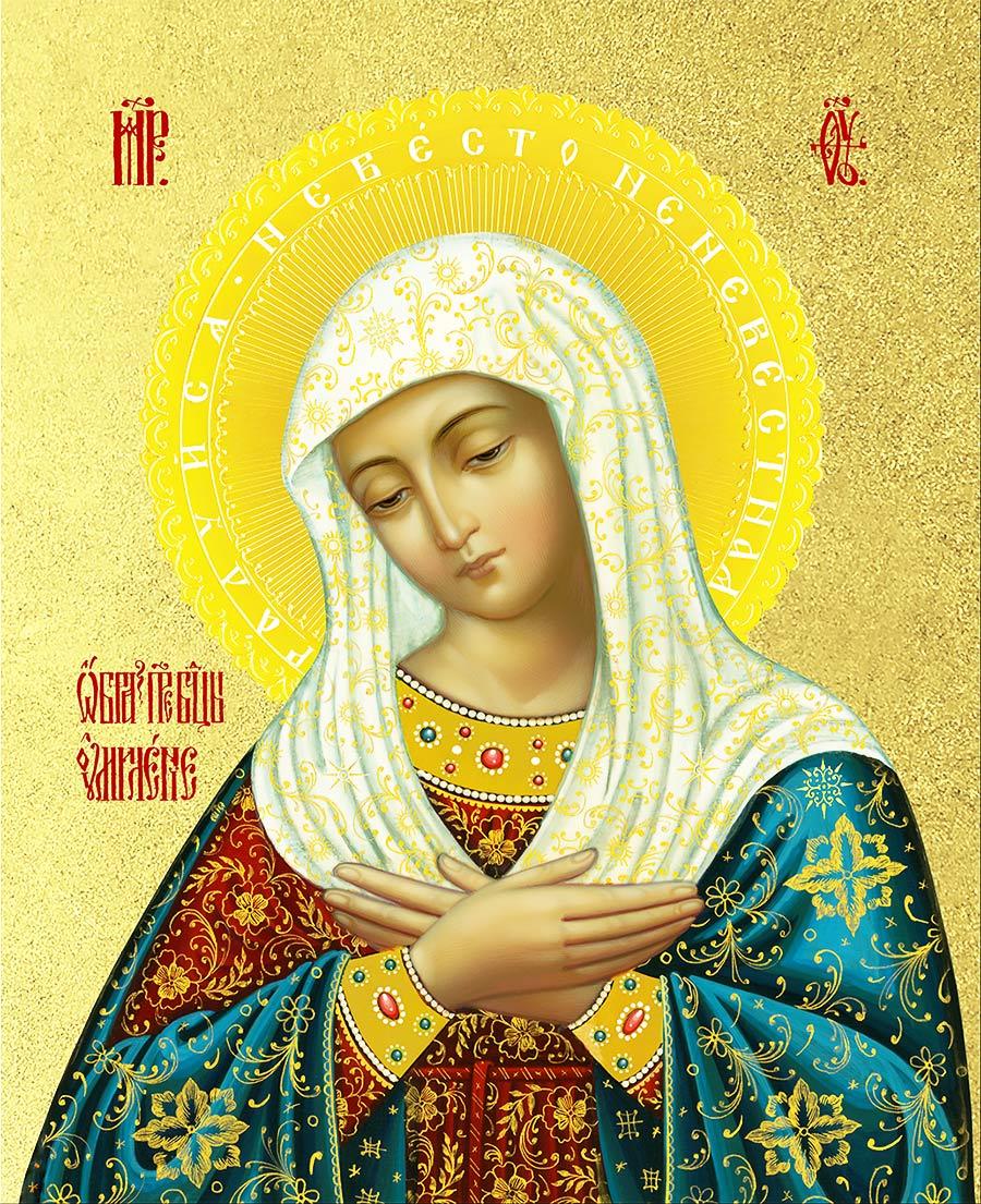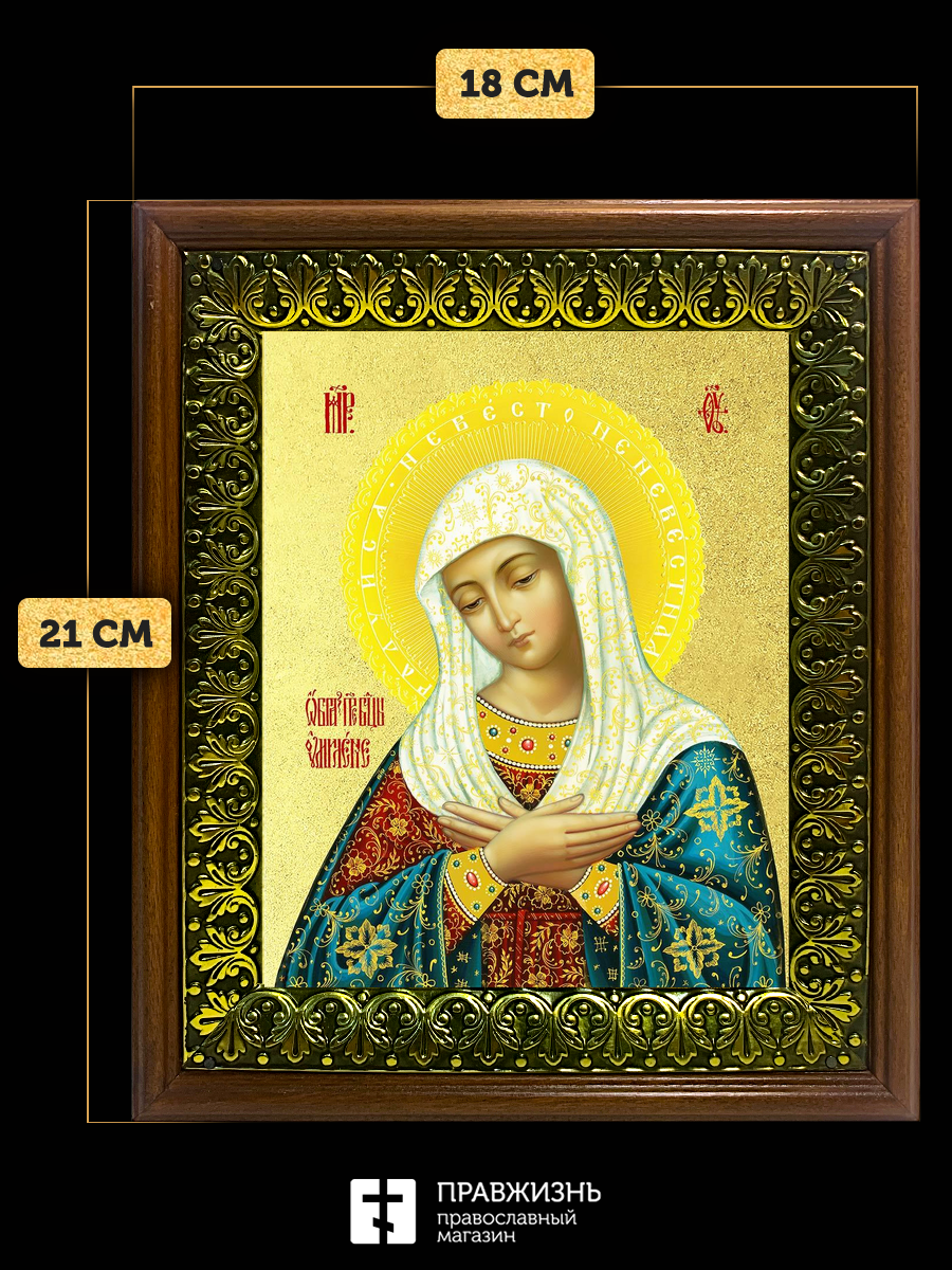 Икона Божией Матери Умиление с золочением, деревянная рамка с басмой и стеклом 18х21х2,5 см 129