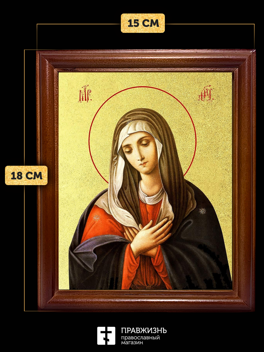 Икона Божией Матери Умиление с золочением, деревянная рамка со стеклом 15х18х2 см 129