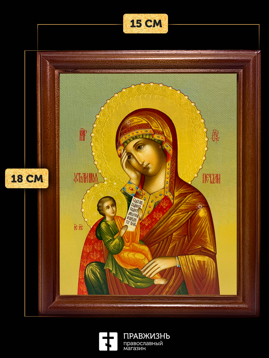 Икона Божией Матери Утоли моя печали, деревянная рамка со стеклом 15х18х2 см 143