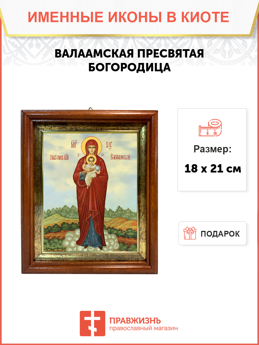 Икона 1 шт, киот-пенал со стеклом 1 шт, подарок 1 шт