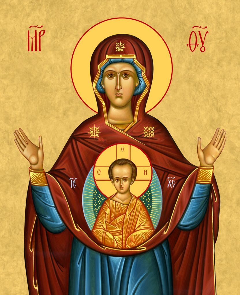 Икона Божией Матери Знамение, деревянная рамка с басмой и стеклом 18х21х2,5 см 1115