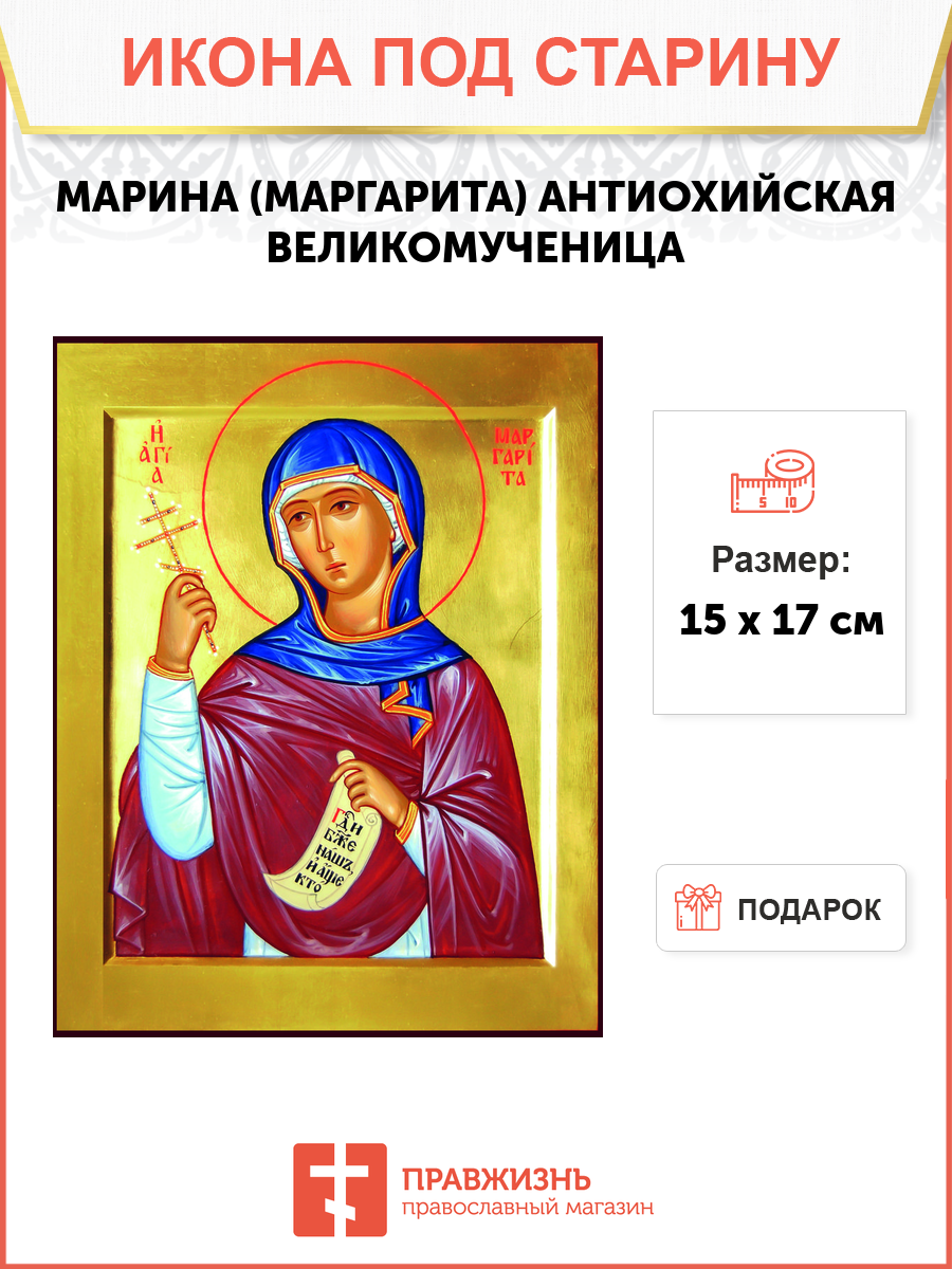 Икона под старину Великомученица Марина (Маргарита) Антиохийская