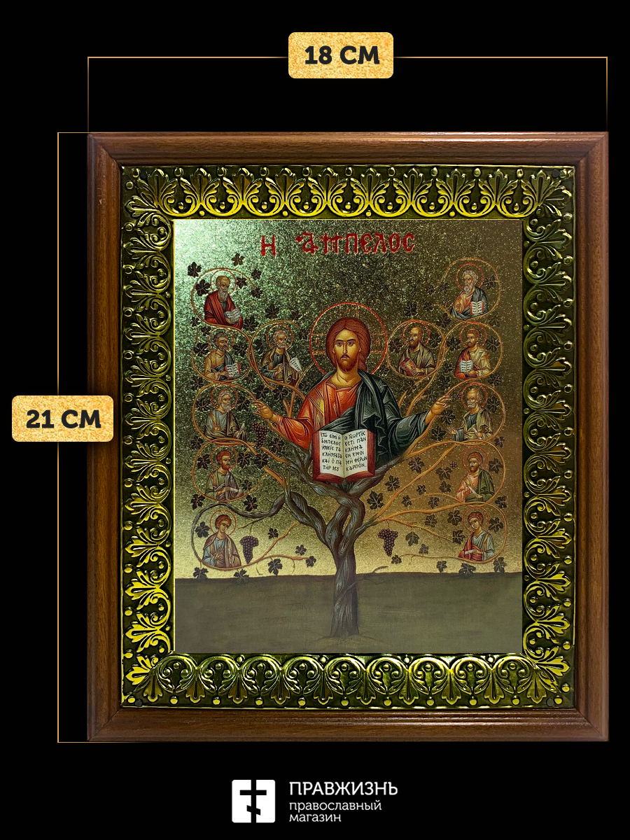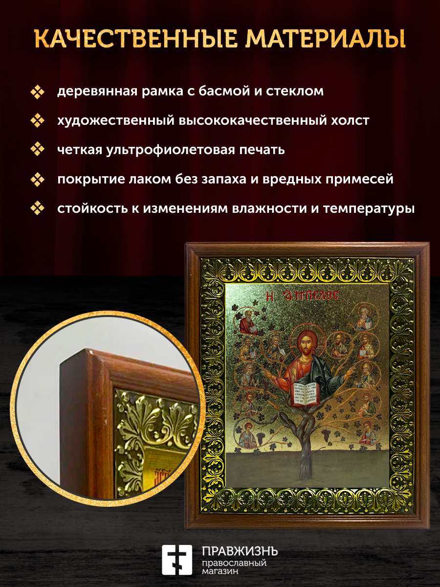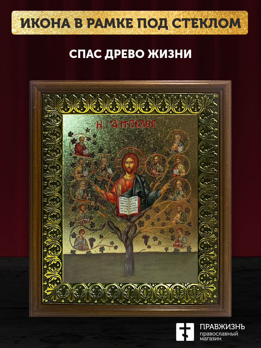 Икона Спас Древо Жизни с золочением, деревянная рамка с басмой и стеклом 18х21х2,5 см