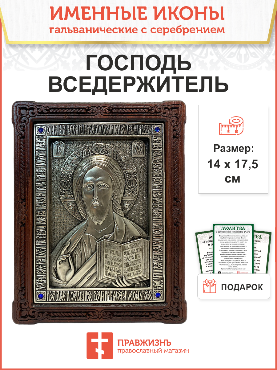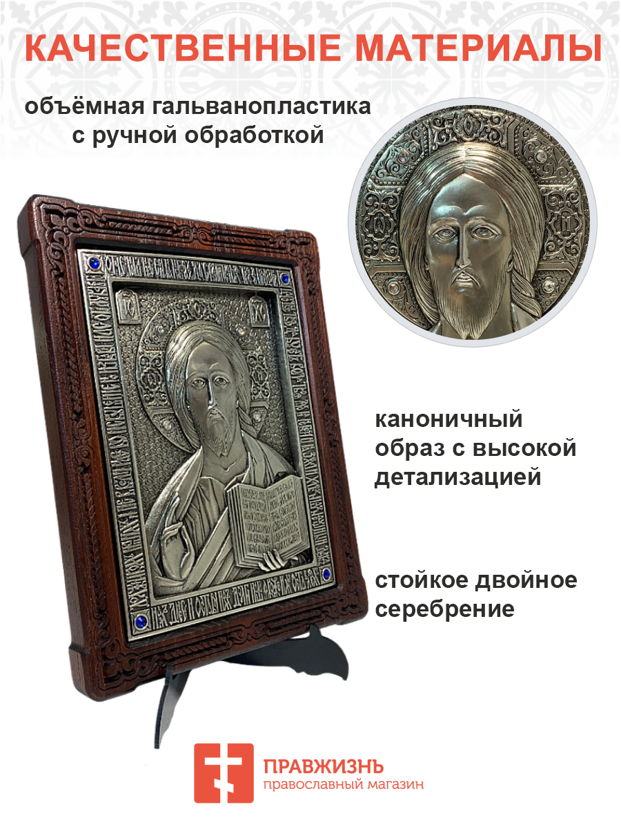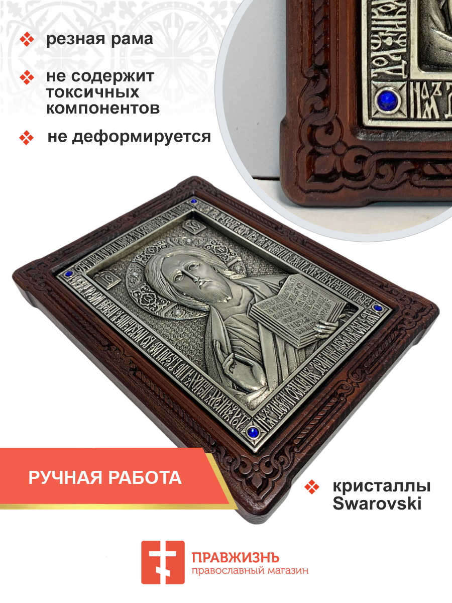 Икона Господь Вседержитель гальваника СЕРЕБРО кристаллы «Swarovski» 214 214_A79-2_KRA